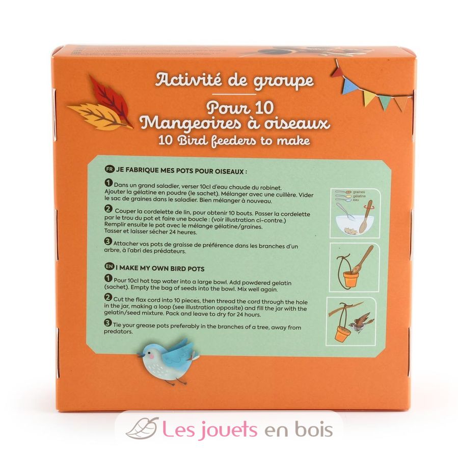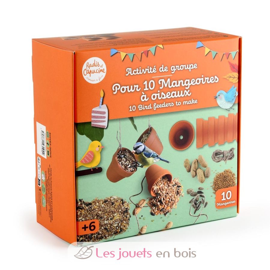 This kit offers a creative and nature-based activity ideal for a group of 10 children. Each child can make their own bird feeder from a small terracotta pot, which they can decorate as they wish.
