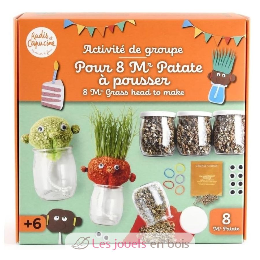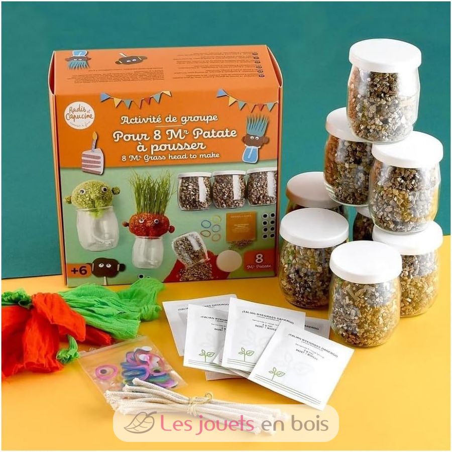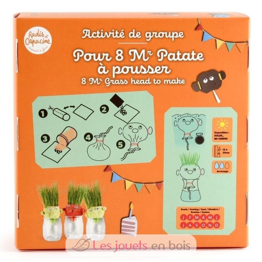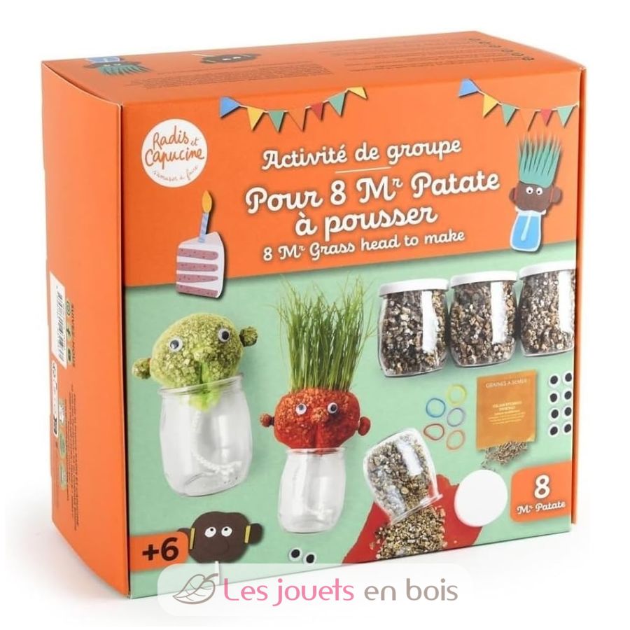 Perfect for birthday parties, school events, or a creative afternoon at home. Easy, fun, and mess-free, this kit allows kids to enjoy gardening while discovering the magic of germination. Each child can also personalize their Mr Grass head with eyes, a mouth… for even more laughs!