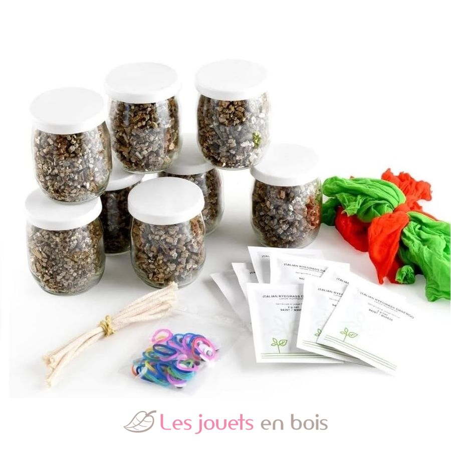 Gardening set for children - Box with 8 hairy pots Mr Grass.