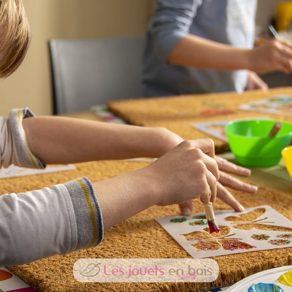 This set contains of a coconut fiber doormat (60 x 40 cm), several stencil sheets, a brush and doormat paint. Wit a little imagination and these materials, the most beautiful personalised doormats can be created!