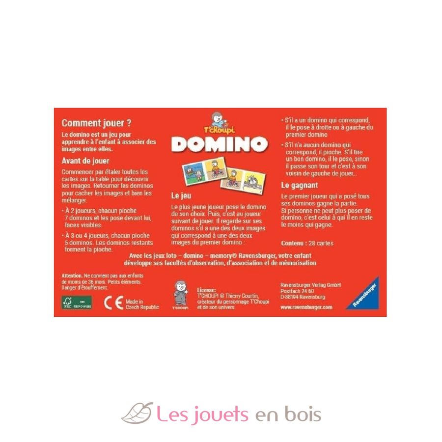 This game consists of 28 FSC-certified wooden dominoes featuring your T'choupi heroes.