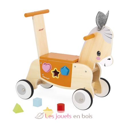 Donkey ride-on, a first-age wooden riding toy made by Janod. Item number J03325.