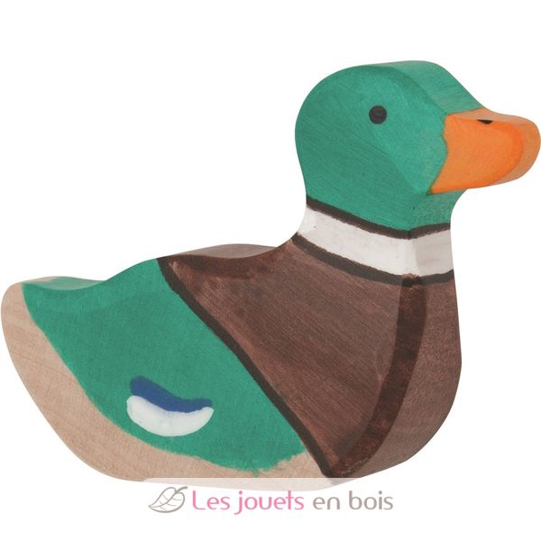 Drake, swimming, head raised, a wooden figurien made by Holztiger, ref 80022.
