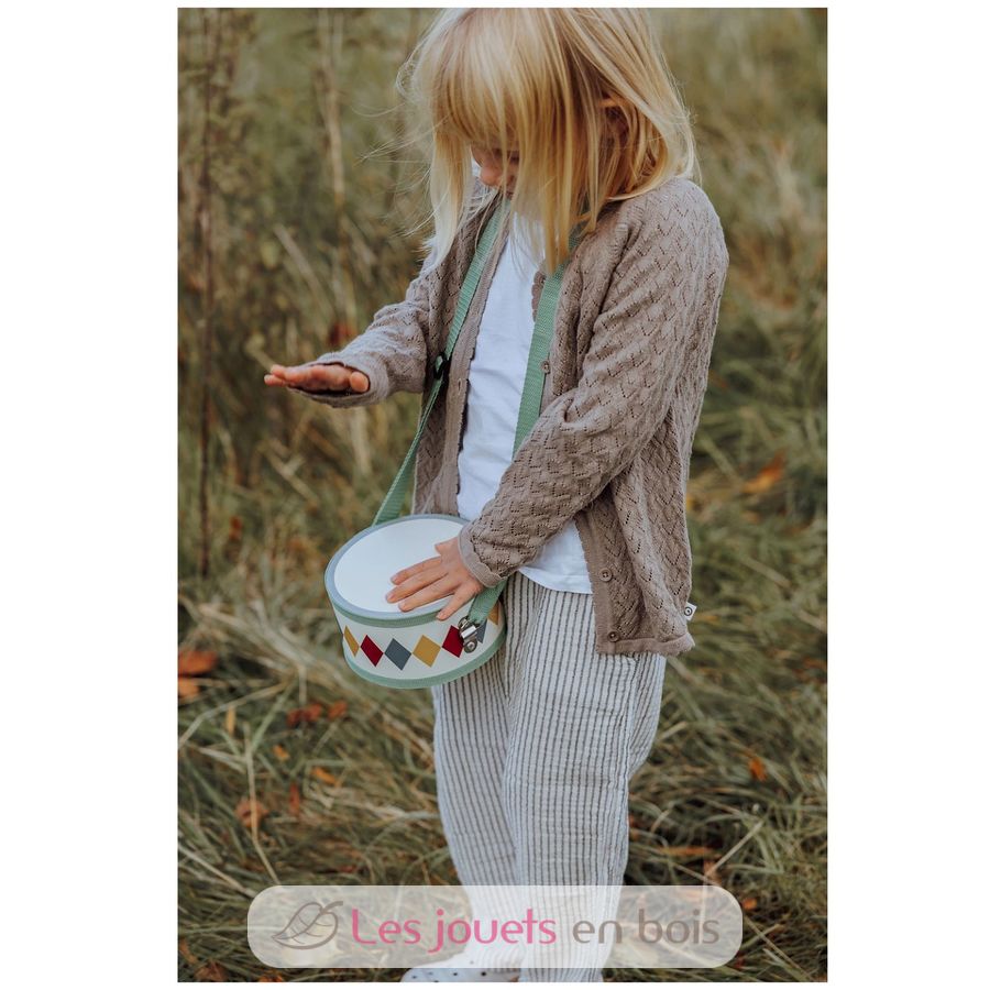 The drum encourages creativity and allows your child to invent their own beat. Your child can either sit with the drum in front of them and play, or carry it over their shoulder, practicing drumming while walking, adding more movement and fun.
