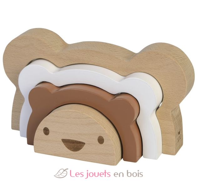 Eco friendly wooden bear stacker, a wooden stacking toy made by BamBam. Item number 51595.