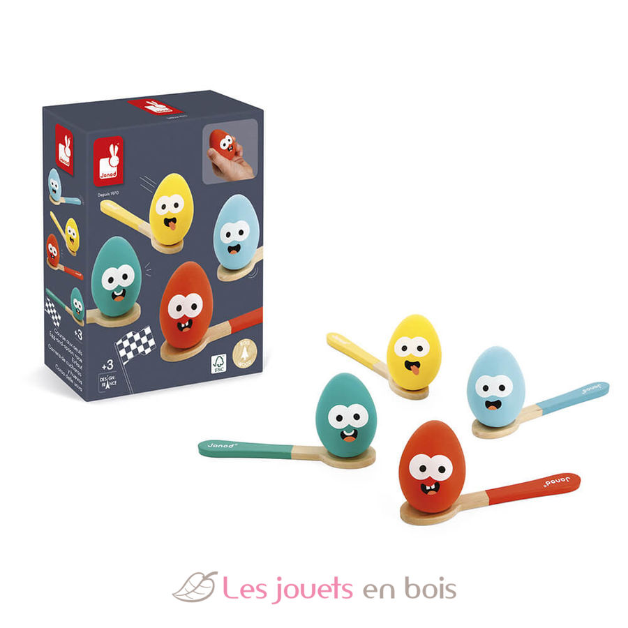 Egg and spoon race, a wooden game made by Janod. Item number J07729.