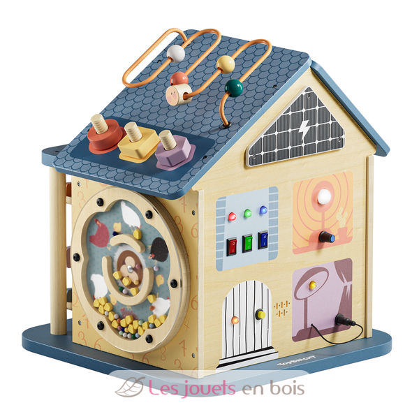 Fantastic Activity House 12 in 1, a complete educational toy, the result of a combination between the motor skills cube and the busy board, made by Topbright.