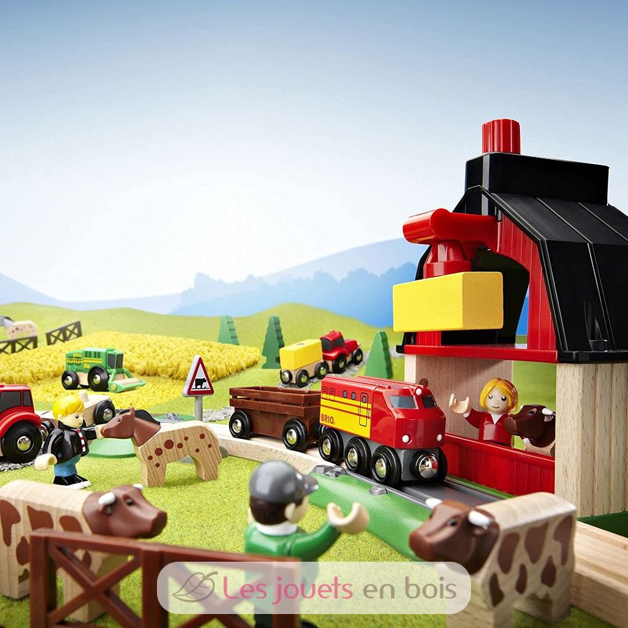 Sheaves of hay, harvest and herd. The farmer in his daily tasks helps. There are as well things to make by here as the farmer would not scorn a knack. You will be able to lead the sheep to their pasture, to charge the hay on the coach or to lead the farmer all around his grounds in the train to pile.