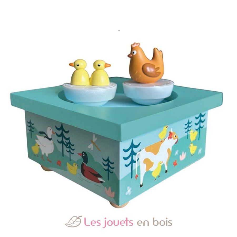 Pretty wooden music box with a hen and her chicks. The figurines start turning as soon as the music starts.