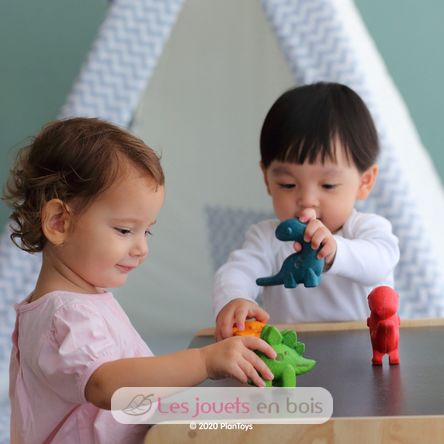 Welcome to the world of prehistoric creatures with these 4 figurines in recycled rubberwood: Diplodocus, Triceratops, T-Rex and Stegosaurus. 4 dinosaurs suitable for small hands, from 12 months.