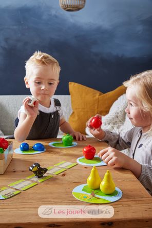 Our classic game "orchard" revisited for toddlers: the rules are adapted to the age of children and accessories are specially designed for small hands of children. Pretty simple wood parts to seize also invite to play by his imagination and stimulates motility. A cooperative game for 1-4 players from 2 years. This game stimulates: * Colors / forms * The motor * The first rules to be observed A toy brand HABA Ref: 3592