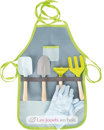 We're off to the flowerbed! With this practical garden aid set comprised of an apron for children with chest pockets, gardening gloves, four small gardening tools (spade, rake, shovel, and pitchfork), children will always have the right tool right at hand! Garden tools made of robust metal with child-friendly wooden grips.