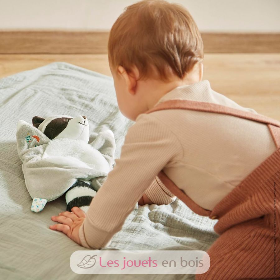 Gaston raccoon doudou, an animal comforter made by Kaloo.