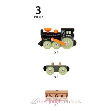 Huh-huh-huuuh! Etwas Unheimliches kriecht die Schienen entlang. Der Geisterzug leuchtet im Dunkeln und hat eine Holzkassette im Schlepptau – was da wohl drin ist? Mit den bekannten BRIO Magnetverbindungen kann diese gespenstische Dampflok mit allen anderen Loks und Waggons verbunden werden und die BRIO World erschrecken.