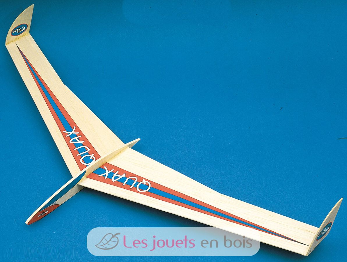 This Quax glider is made entirely of balsa wood. The kit includes the various pieces in balsa and detailed instructions for the construction of the model. Easy to assemble in a few steps (glue not supplied). The prints are to be cut out on the instructions and to stick on the elements in balsa. Length: 23 cm. Wingspan 53 cm.