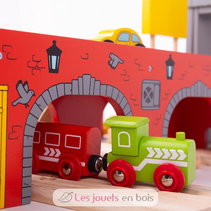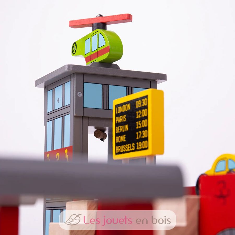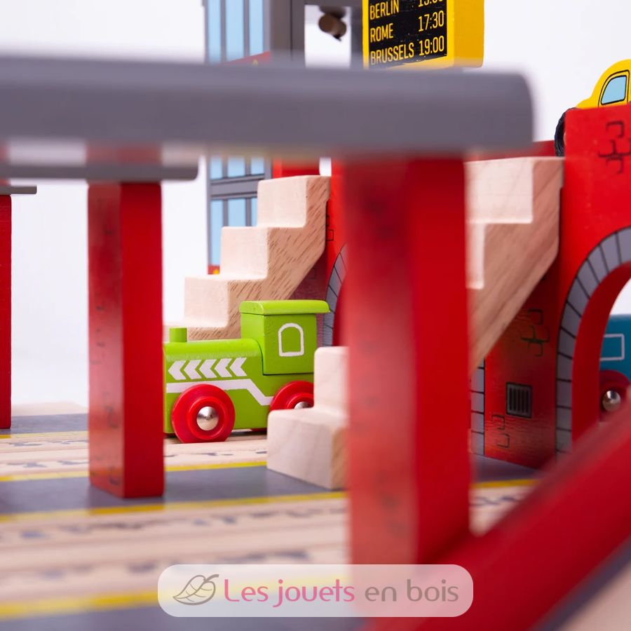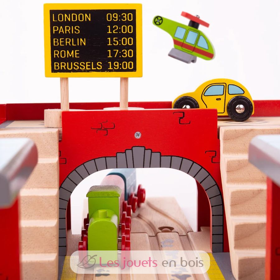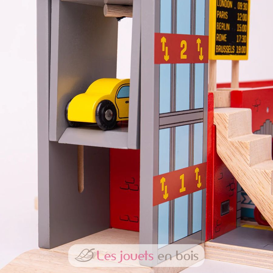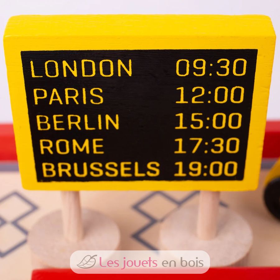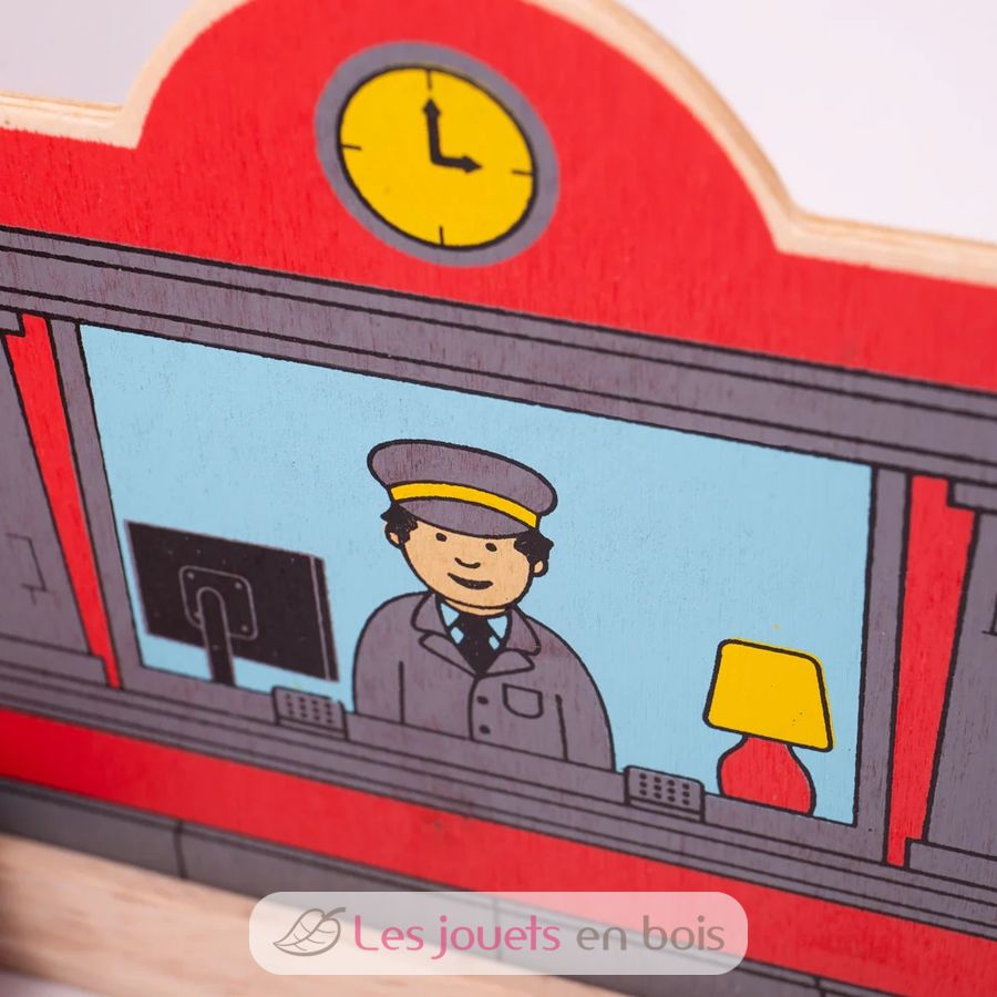 Access to the car park is done via the working lift and side ramp, making it feel like the real thing. A wooden board also shows a ticket man in his ticket office ready to welcome passengers aboard. There is endless scope for imagination with this wooden train set accessory.