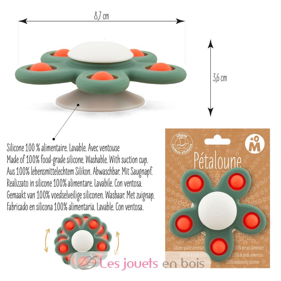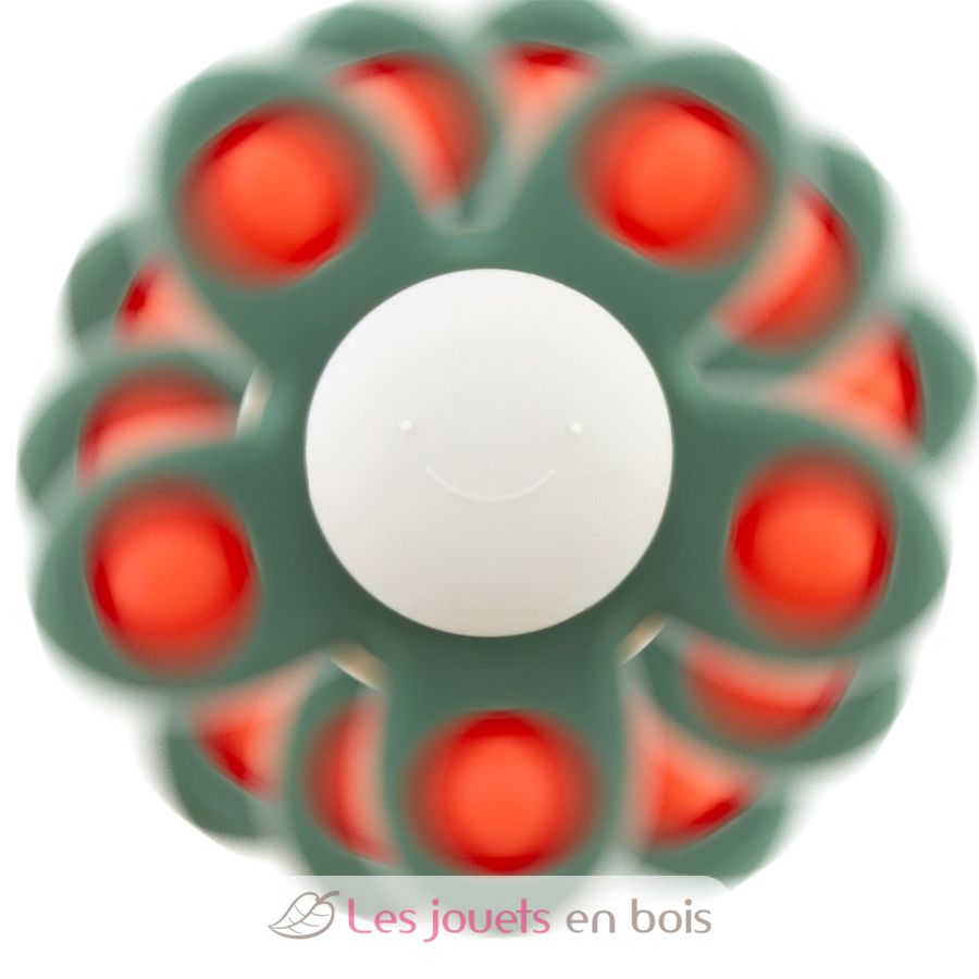 This engaging sensory toy made of silicone encourages the child to touch, explore, chew and spin!
