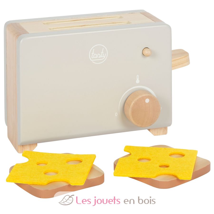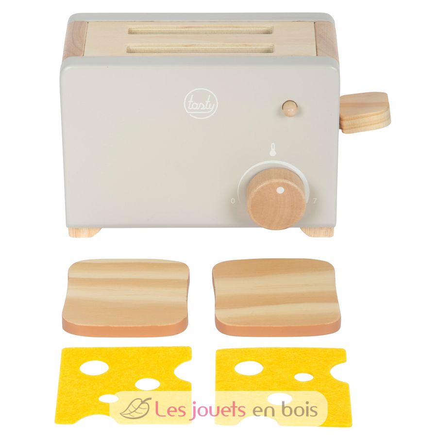 The accessories, consisting of two toast slices and two felt cheese slices, together with the clicking noise of the temperature knob, provide realistic playtime fun.