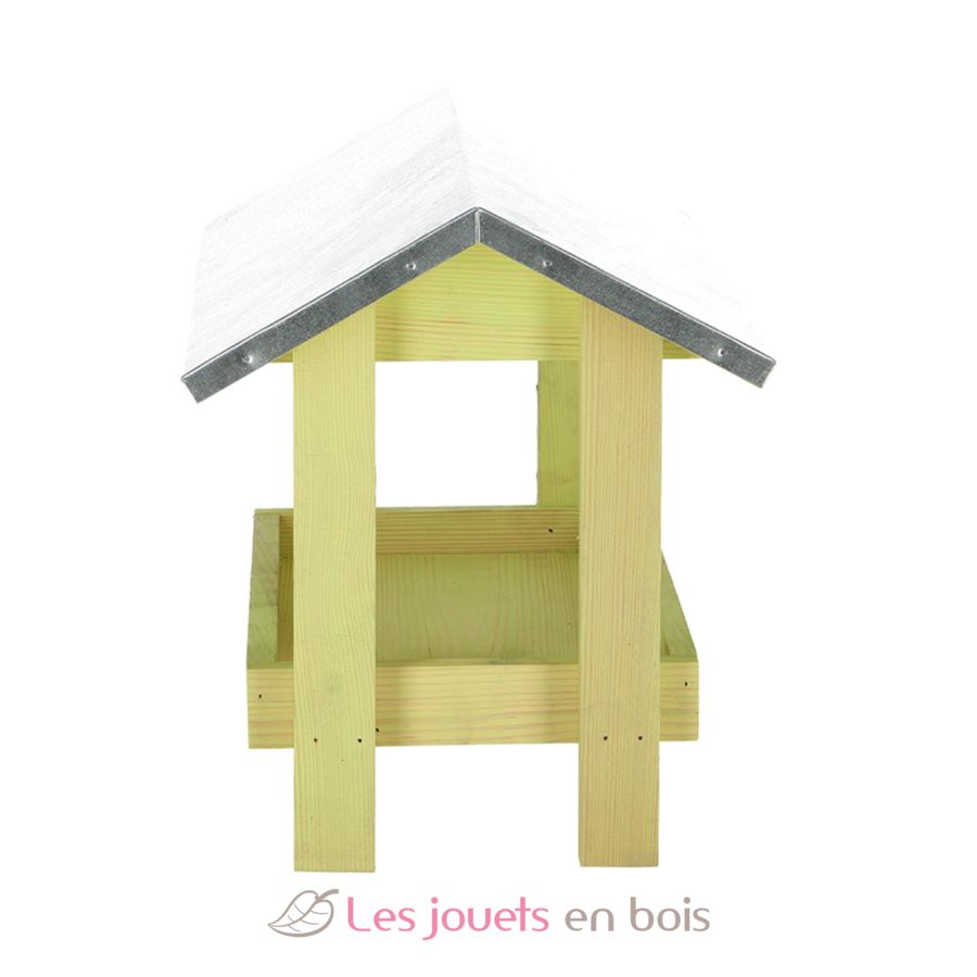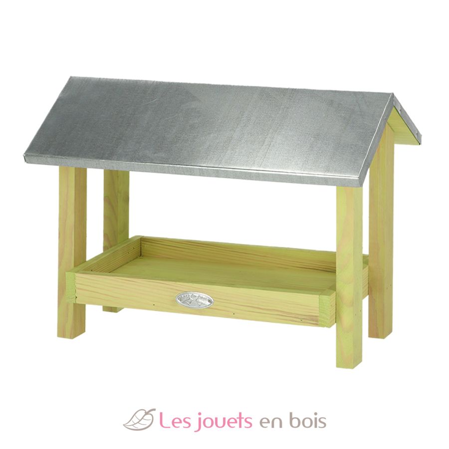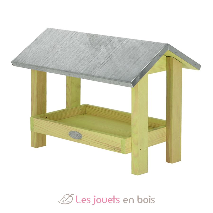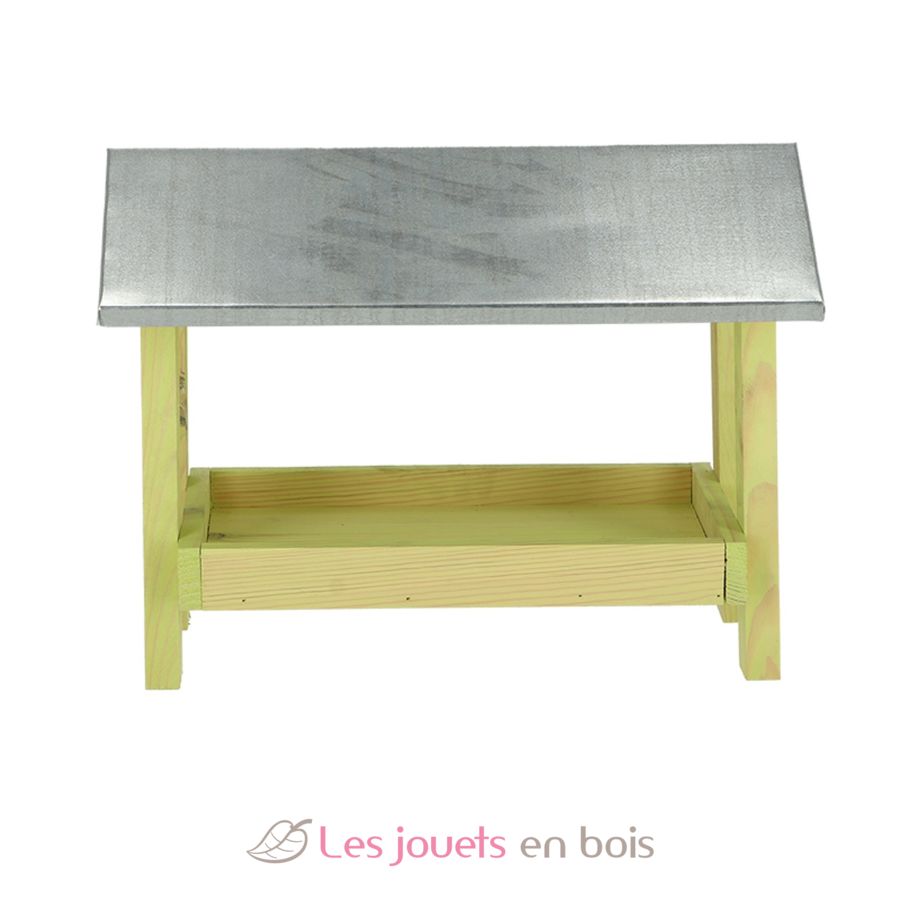Ground bird table made of pine wood with zinc roof.