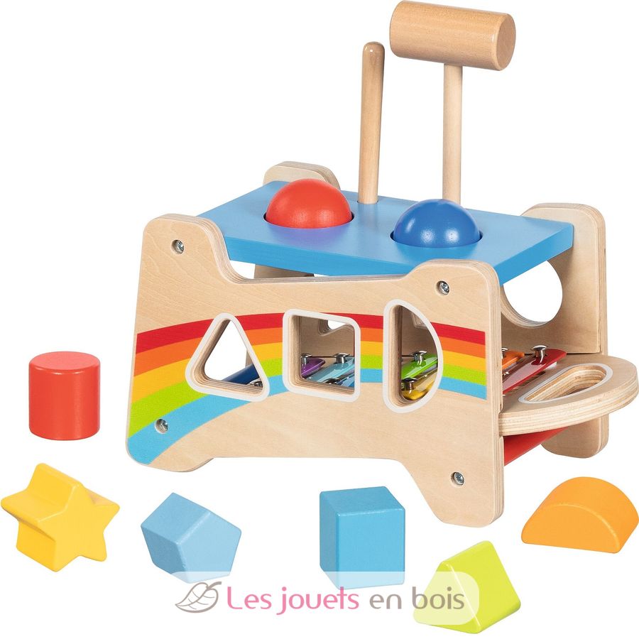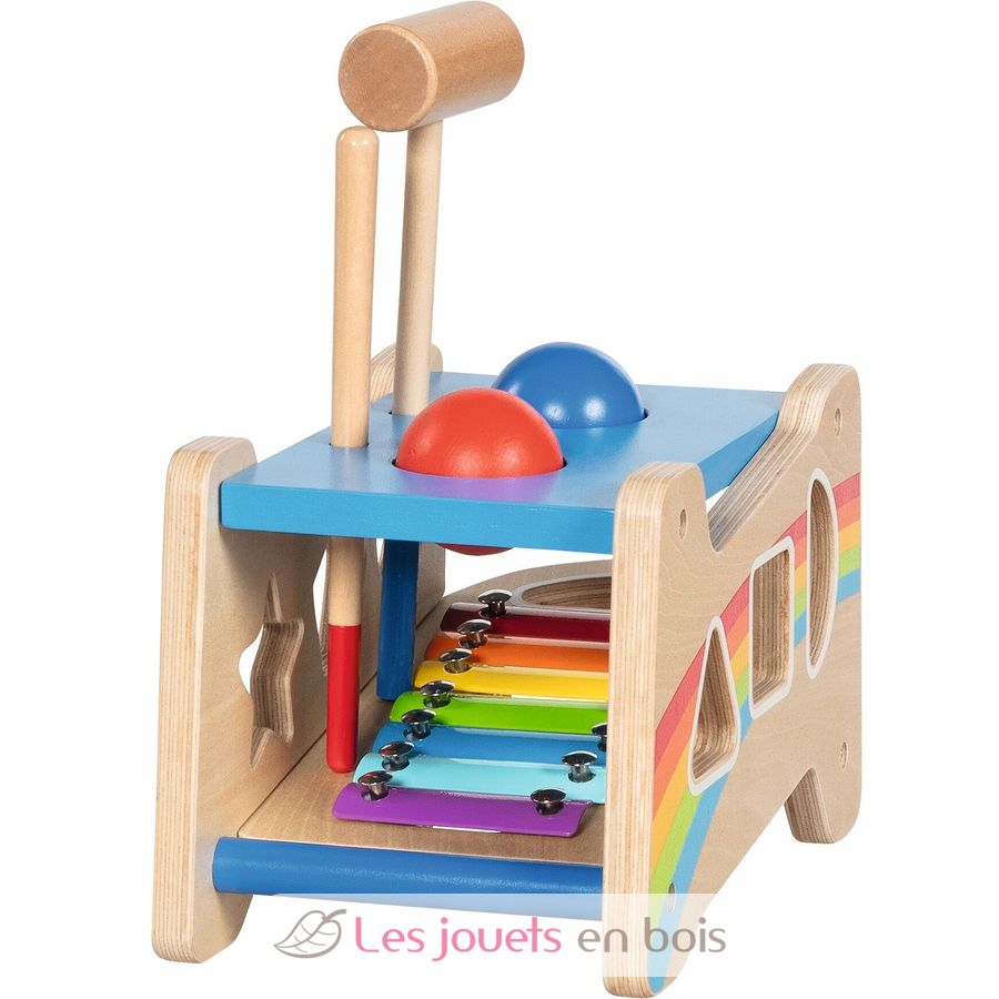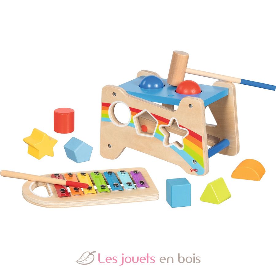 Hammer bench and sorting box with xylophone, a wooden toy for baby made by Goki.