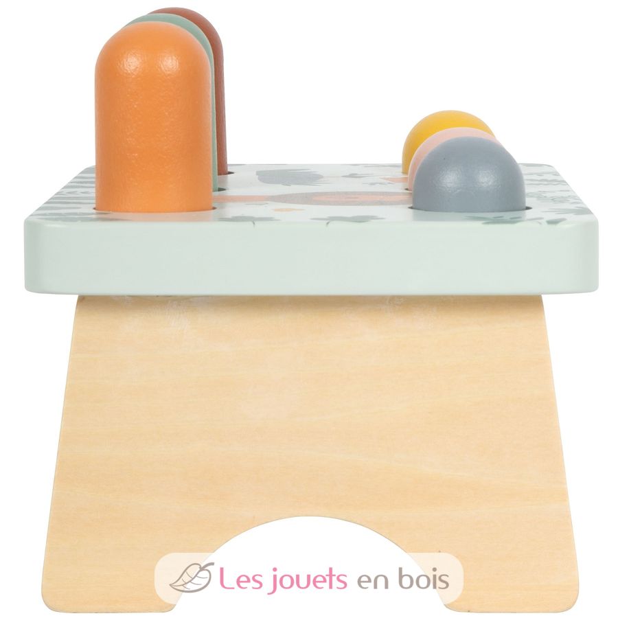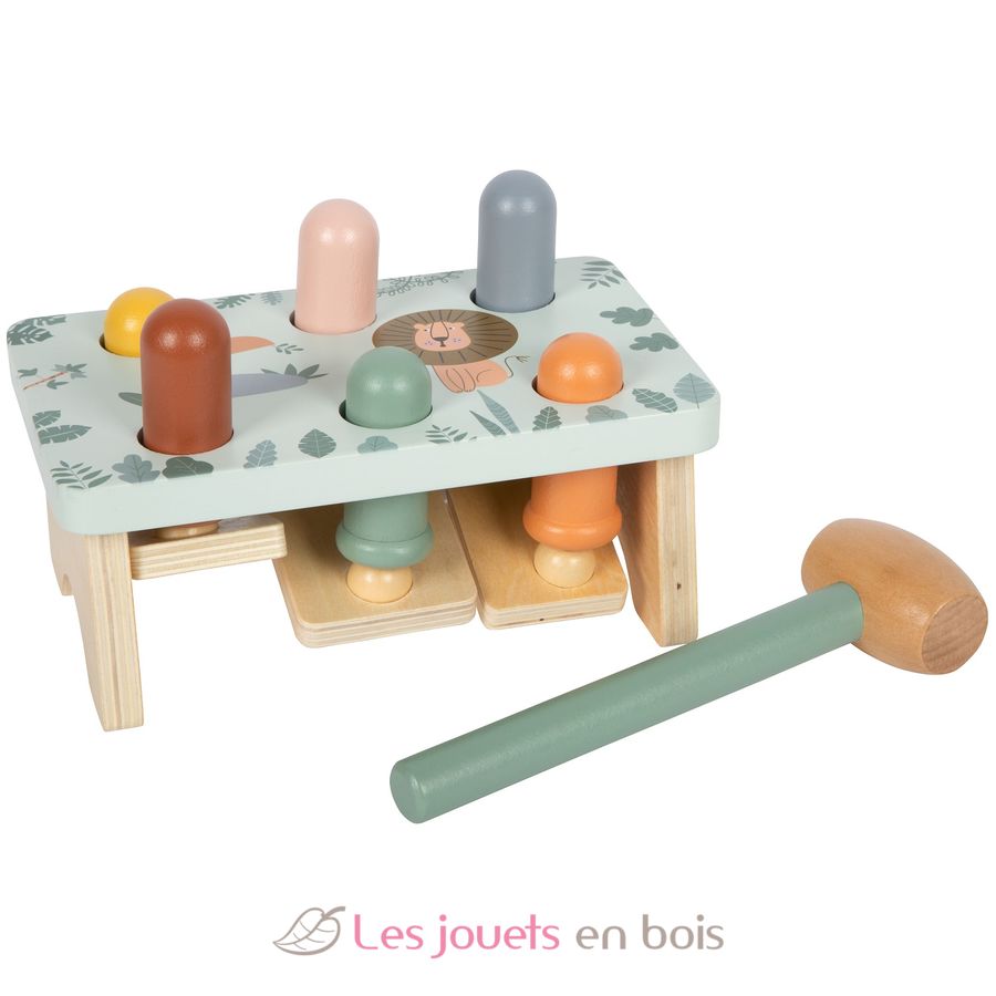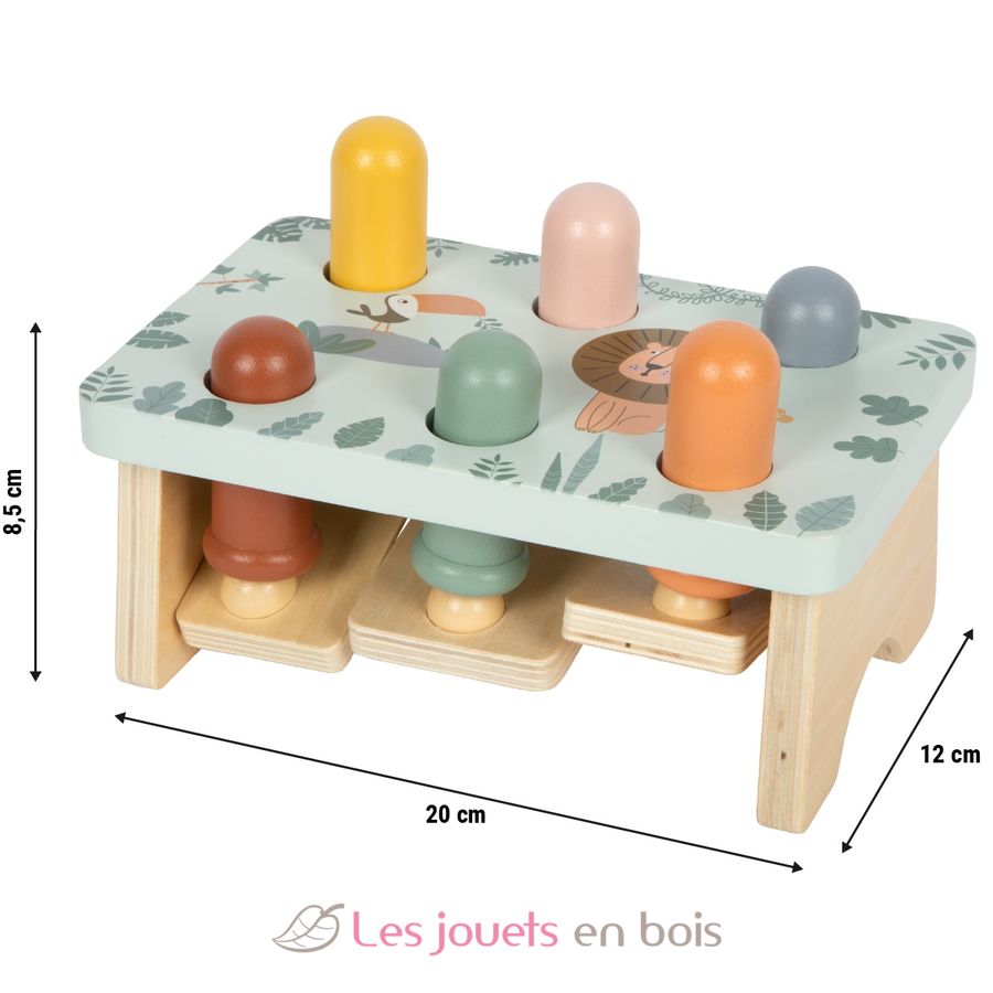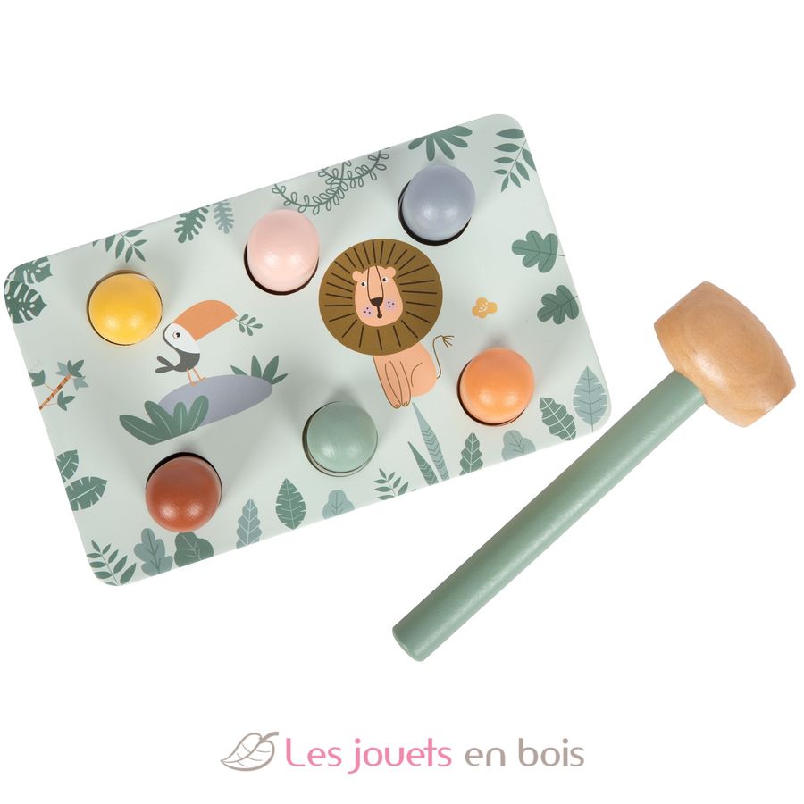 This lovingly designed hammering game made of FSC-certified wood with a safari look encourages children to use a hammer to knock down the wooden sticks protruding from the tapping bench.