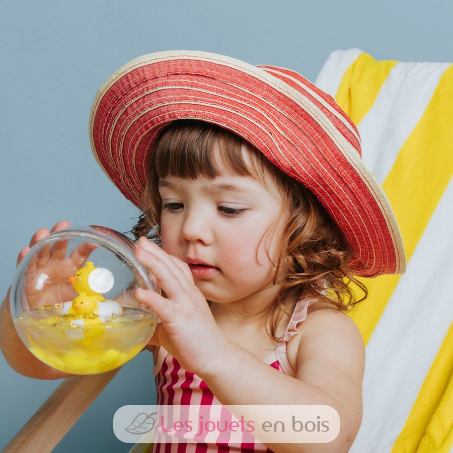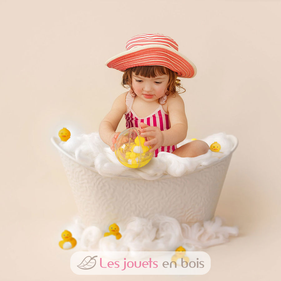 Ideal for playing in the water, this Happy Bubbles Duckies floating ball is an original bath toy for children 12 months and older. This transparent sensory ball stimulates the curiosity of toddlers who can watch the animals and their babies float and swim inside the bubble among the sparkling glitter. A real treat for the eyes!