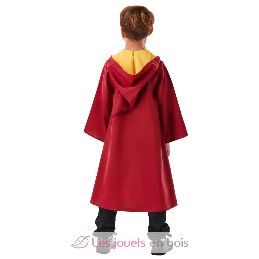 This children's costume includes a red and yellow fabric quidditch cape with an integrated hood, the Gryffindor crest printed on the chest, lace-up fastenings on the front and a printed jersey top integrated into the cape.