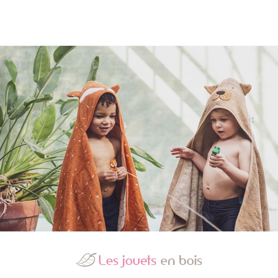 Ideal for baths or dips in the pool, this hooded towel is perfect for children from 18 months.