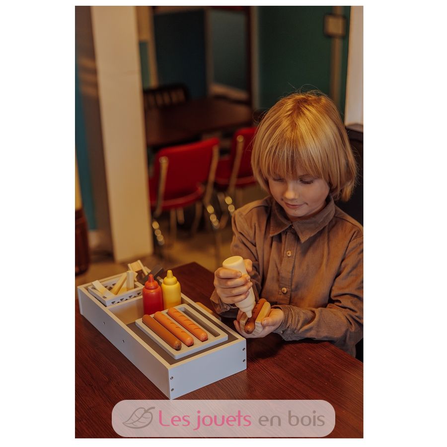 Complete with realistic hotdogs, soft buns, cooking utensils, crispy French fries, and refreshing sodas, this play hotdog stand has all the essentials for creating delicious pretend meals. The vibrant colors and thoughtful design make it easy for kids to interact with the set, serving up tasty treats to family, friends, or their favorite stuffed animals.