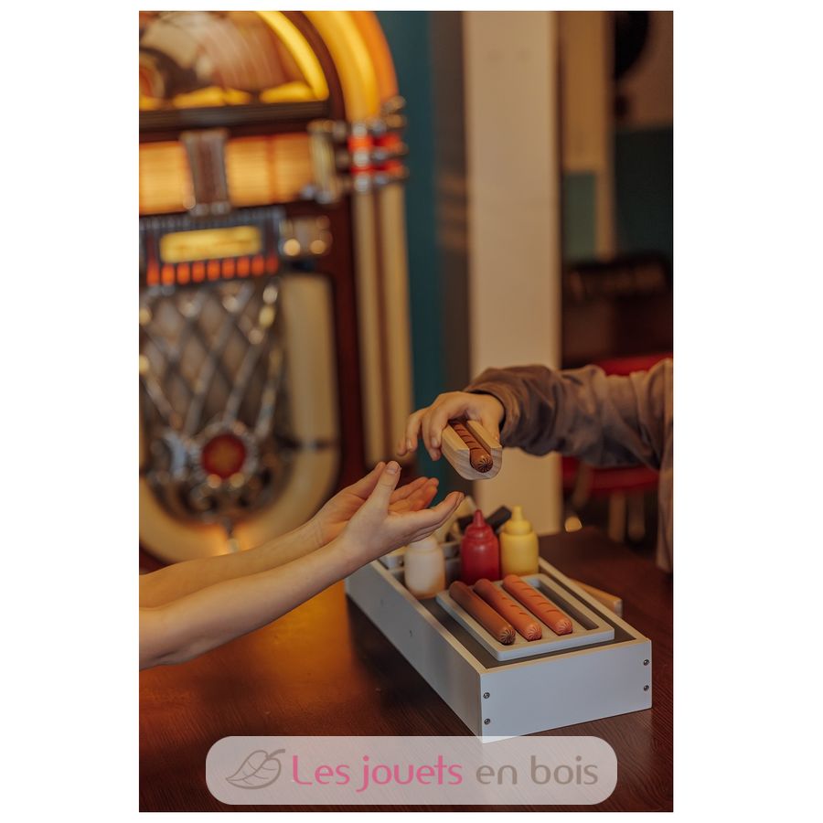 This wooden hotdog stand is an ideal addition to children’s collection of pretend play food toys. It promotes imaginative thinking, fine motor skills, and social development while providing an enjoyable and realistic experience.