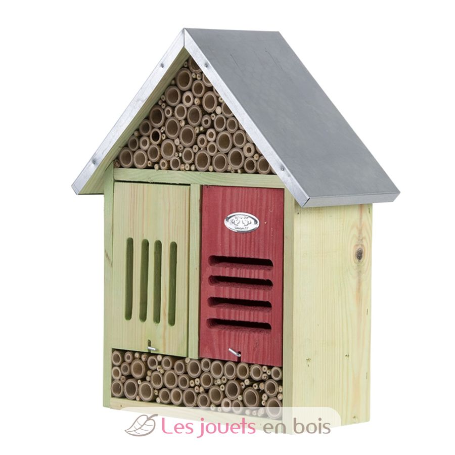 Wooden insect hotel with zinc roof made by Esschert Design - WA77.
