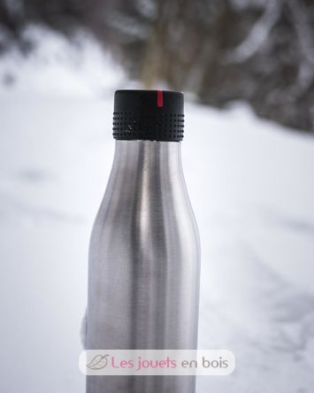 This insulated stainless steel bottle has a silicon gasket on the lid that ensures perfect tightness.