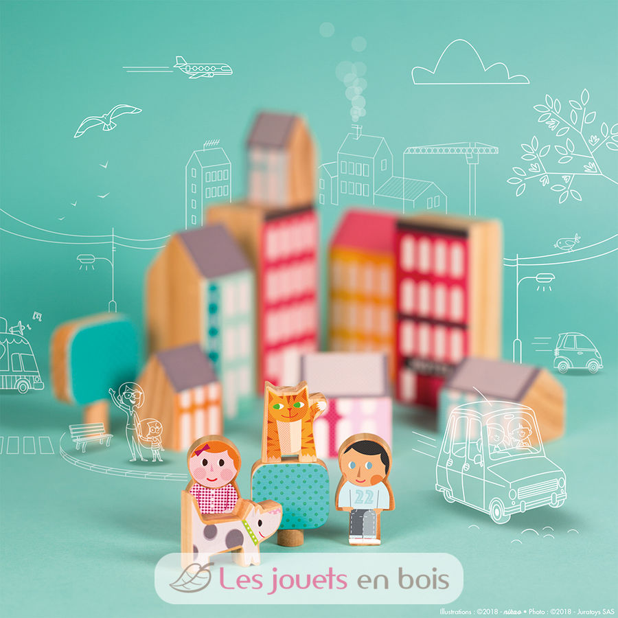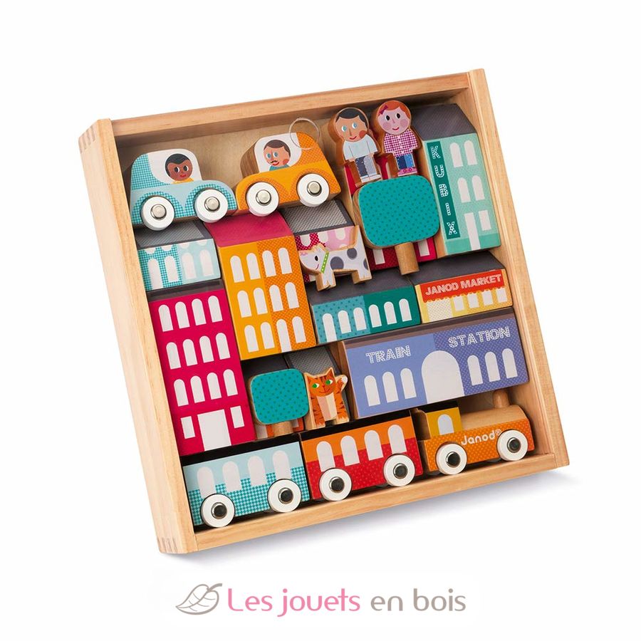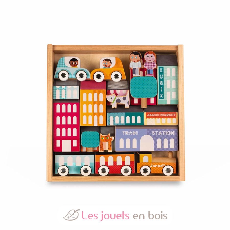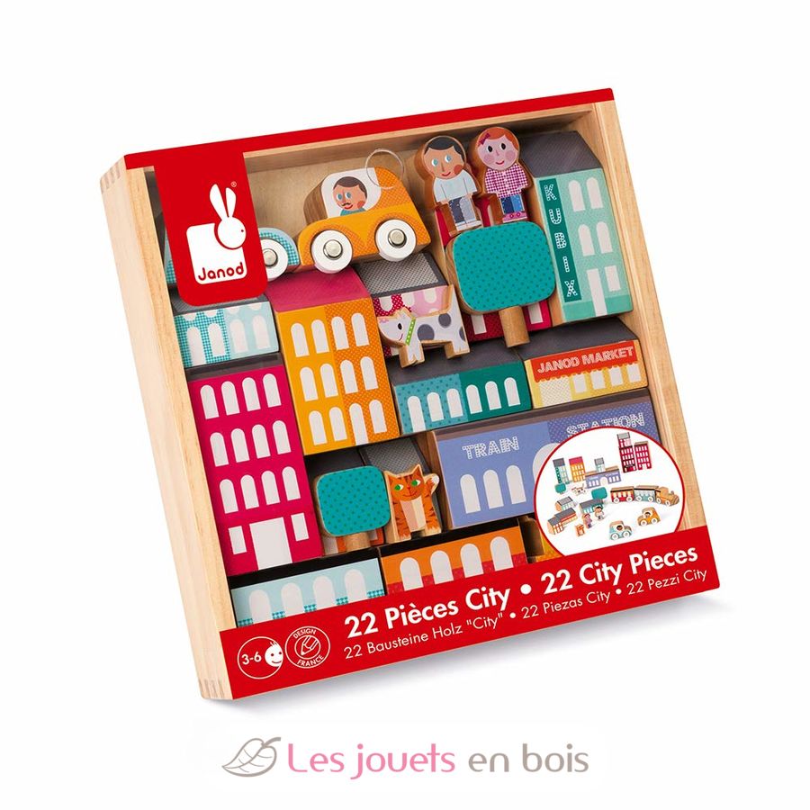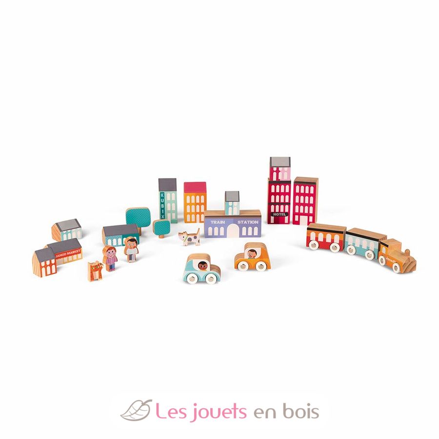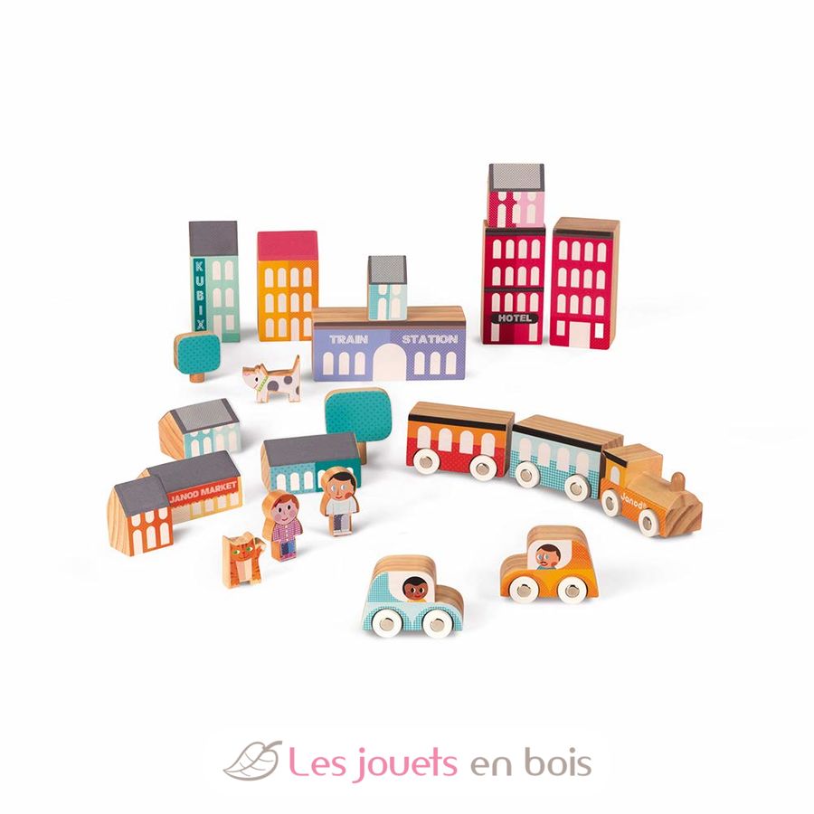 Kubix 22 pieces City, a wooden building toy made by Janod. Ref. J08071.