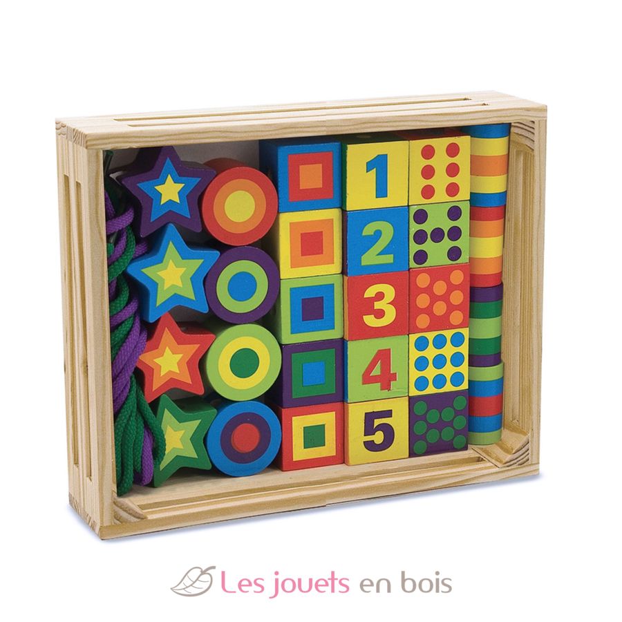 Lacing Beads, wooden beads made by Melissa and Doug. Item number 13775.