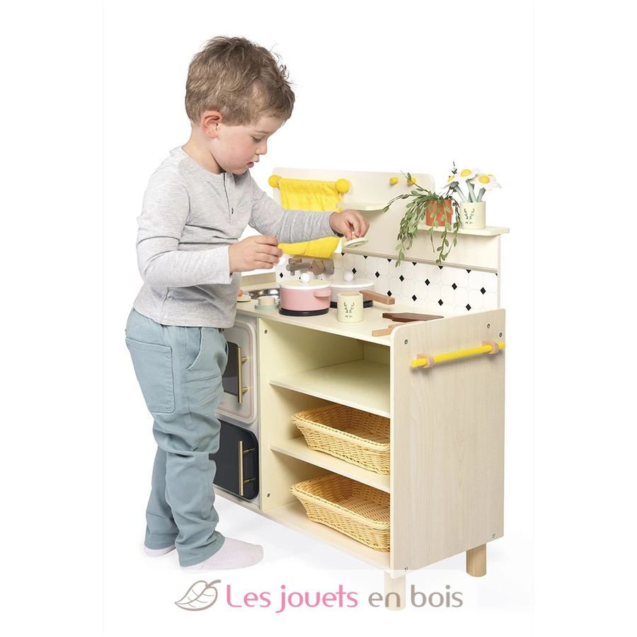 With their large wooden kitchen, children can imagine delicious recipes at the stove and imitate the grown-ups, from age 3 upwards. Equipped just like a real kitchen and with 16 accessories, this toy kitchen is perfect for playing dinette and inventing all kinds of stories and dishes!