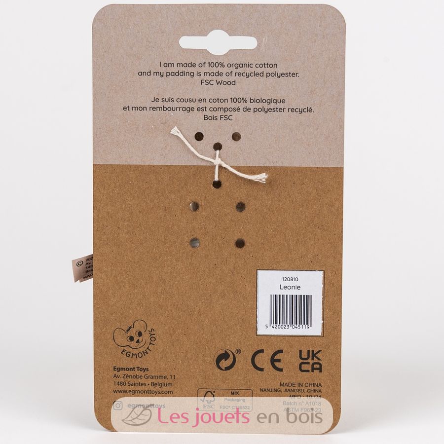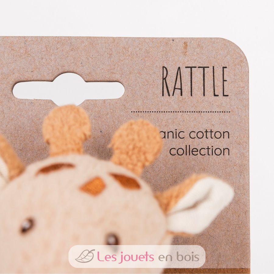 Hanging from the wooden ring, Leonie the Giraffe is made of organic cotton and recycled polyester.