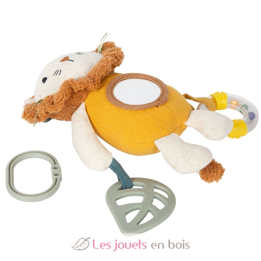 Feel, grasp and discover... The cuddly suspended figure Little Lion is a versatile accompaniment for babies and young children. With a teething ring, rattle and various fabric structures, it provides sensual experience and playful support. Thanks to practical suspension, the small fabric animal can be attached everywhere – to the pram, the infant carrier or the toy bar. The soft muslin fabric, the cute lion’s face and the cuddly haptics make the babies’ toy a faithful companion in everyday life.