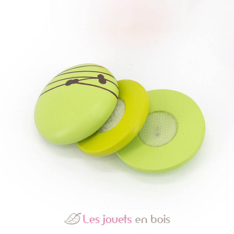 Role playing is an effective way for children to make sense of the world around them. This macaron set is a perfect tool for learning about sharing and the development of social skills. Each macaron consists out of three pieces connected by a hook and loop fastener. Take the macarons apart, get creative and mix and match them!