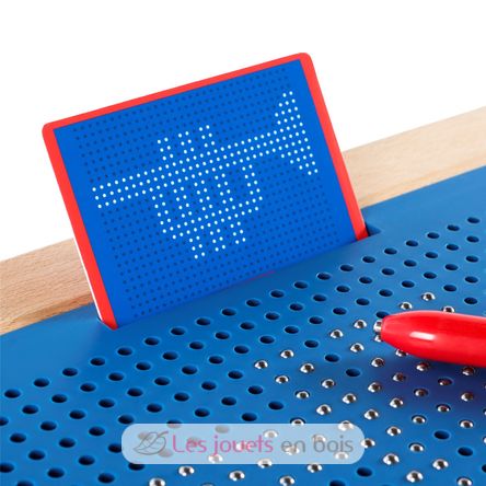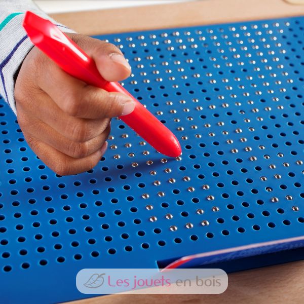 Children 3 and up can create an array of drawings and creations using a magnetic pen and inset metal balls.