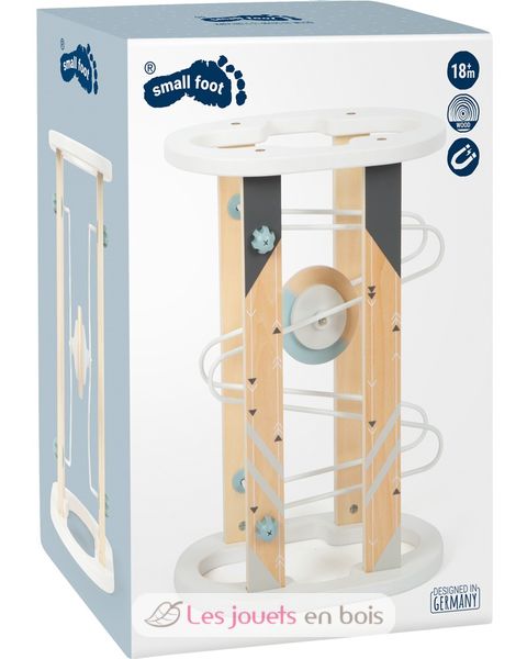 This marble run has a fascinating magnetic effect that puts on quite a show when the large spinning piece speedily rolls up and down! This marble run with a Scandinavian design is a real attention-drawer in the nursery with its subtle colour scheme and high amount of visible wood material. With a bit of skill, the handy marble run can be moved in a way that the spinning piece rolls in an endless loop - making long-lasting motor skills fun a guarantee! Plus, it's very stable with its wide base!