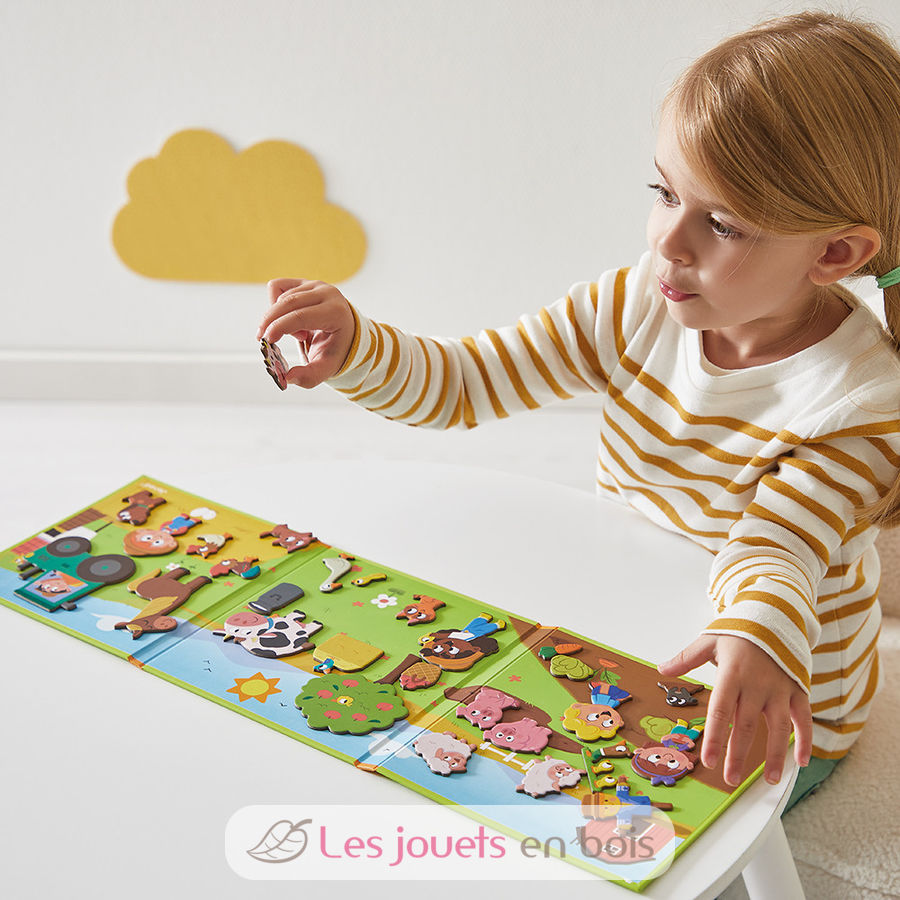 Your child’s fine motor skills – a key early-learning development – will be improved as they grasp the magnetic pieces. That’s without forgetting the imagination... once positioned on the scenic background, each magnet will prompt the creation of countless stories. The little pigs are rolling around in the mud, the little sheep are jumping over the fences and the farmer is leaving for the harvest aboard his green tractor. Many a fun scenario will come to life in front of your little ones’ eyes!
