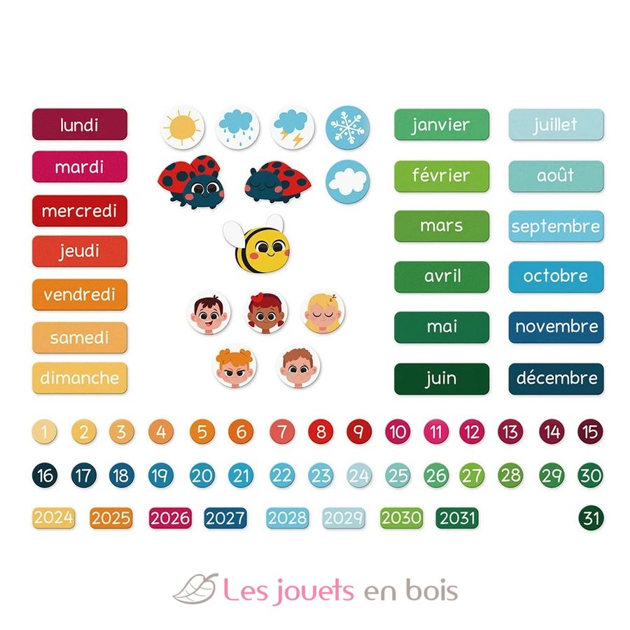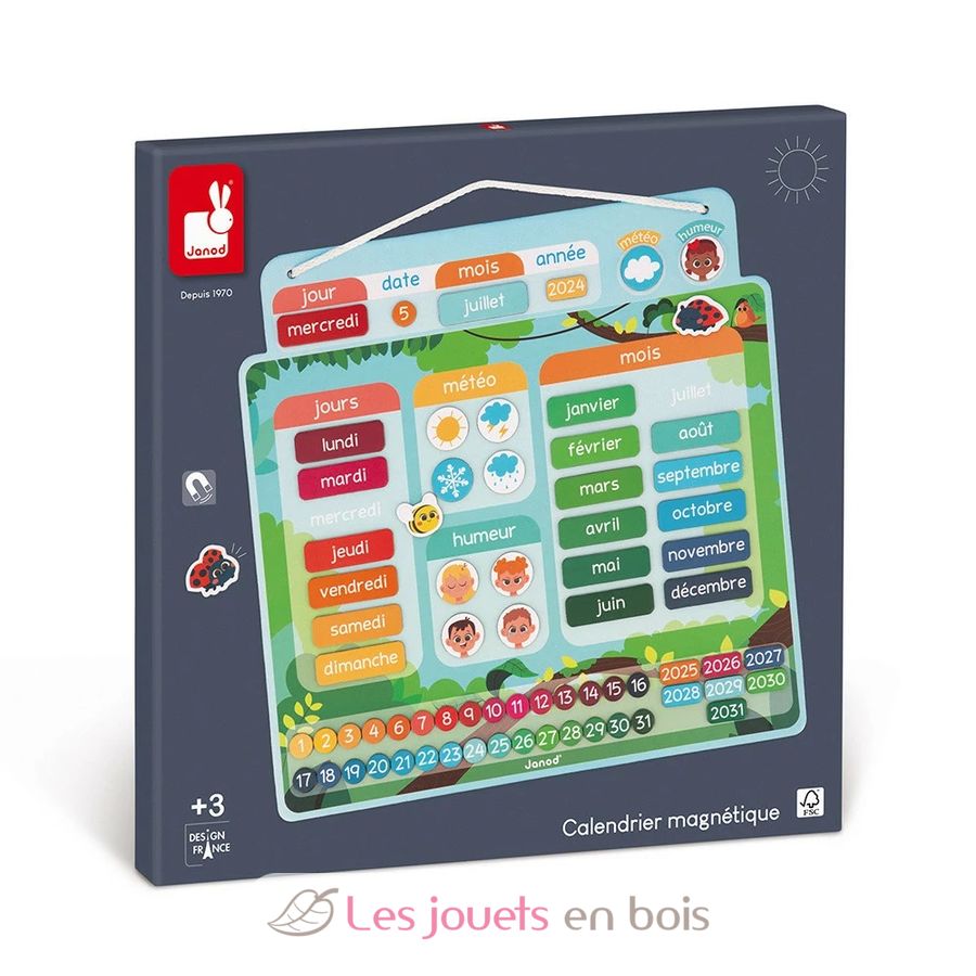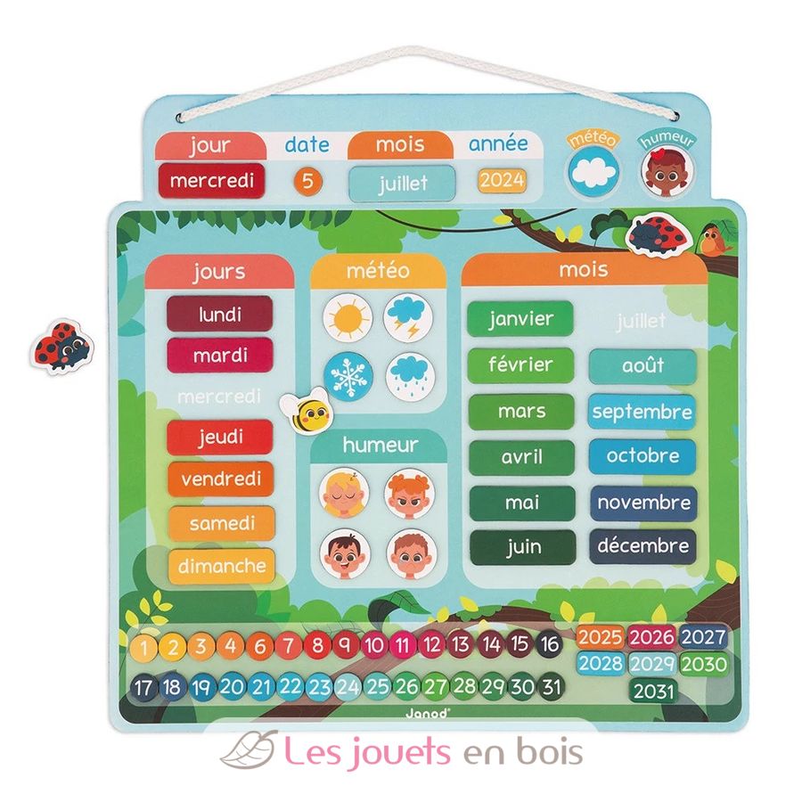 Wooden magnetic calendar made by Janod. Dimensions : 36 x 36 cm.