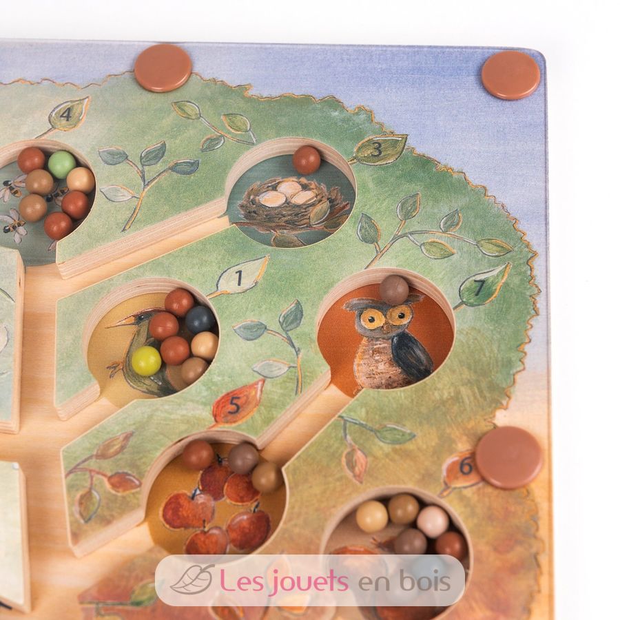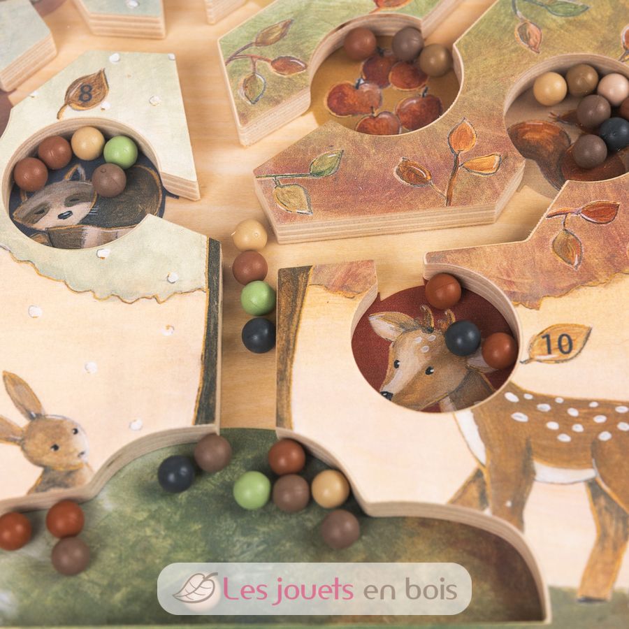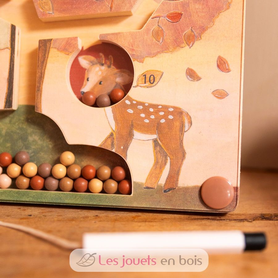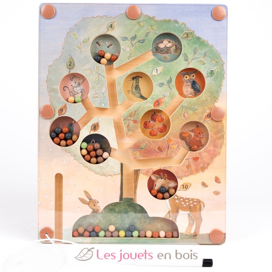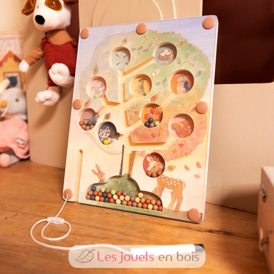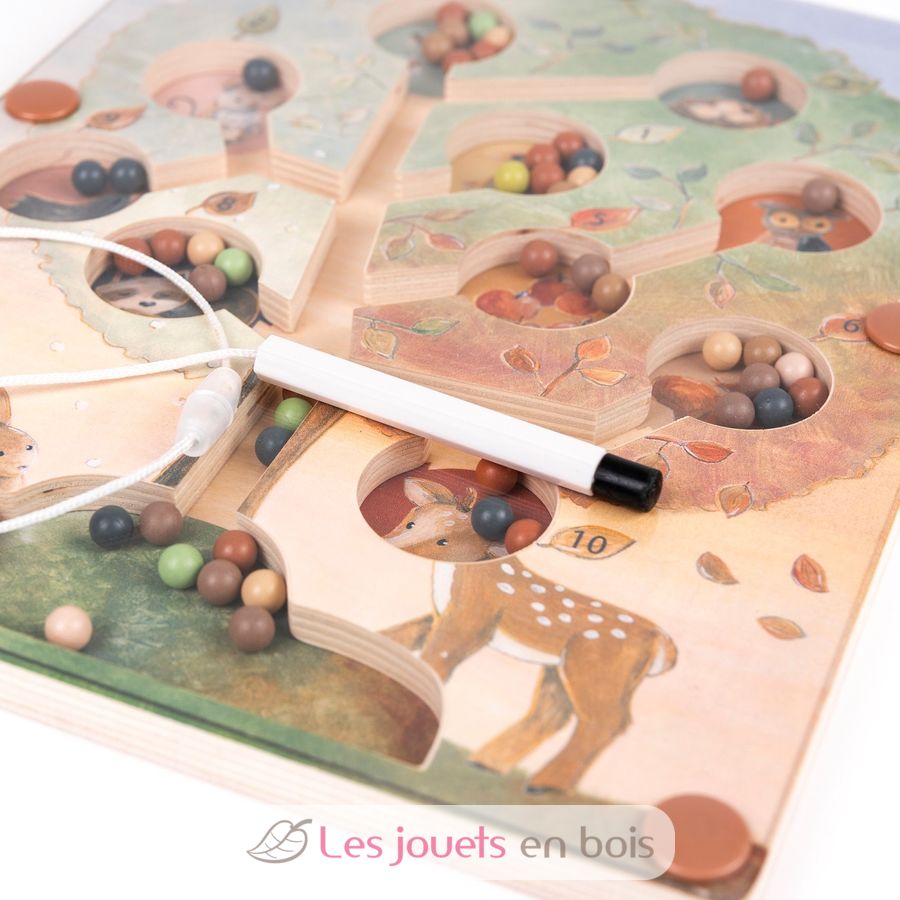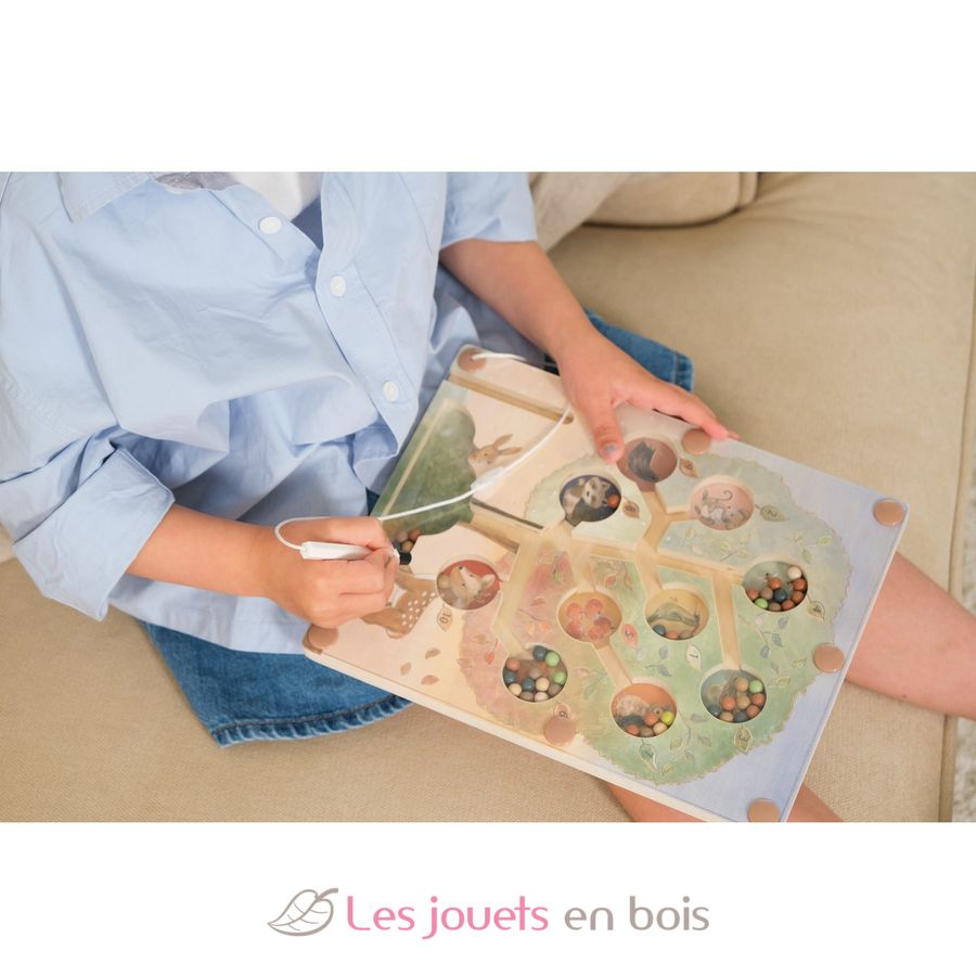 Watch little fingers guide colourful wooden beads up through winding tree channels with a magical magnetic wand. Each pocket holds a different woodland friend—deer, owl, fox and rabbit—waiting to catch their special beads in this enchanting maze adventure.