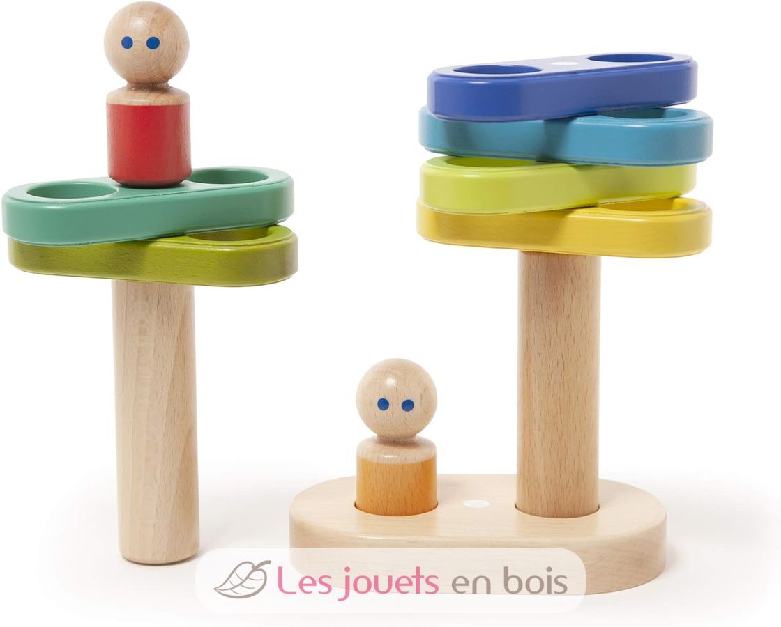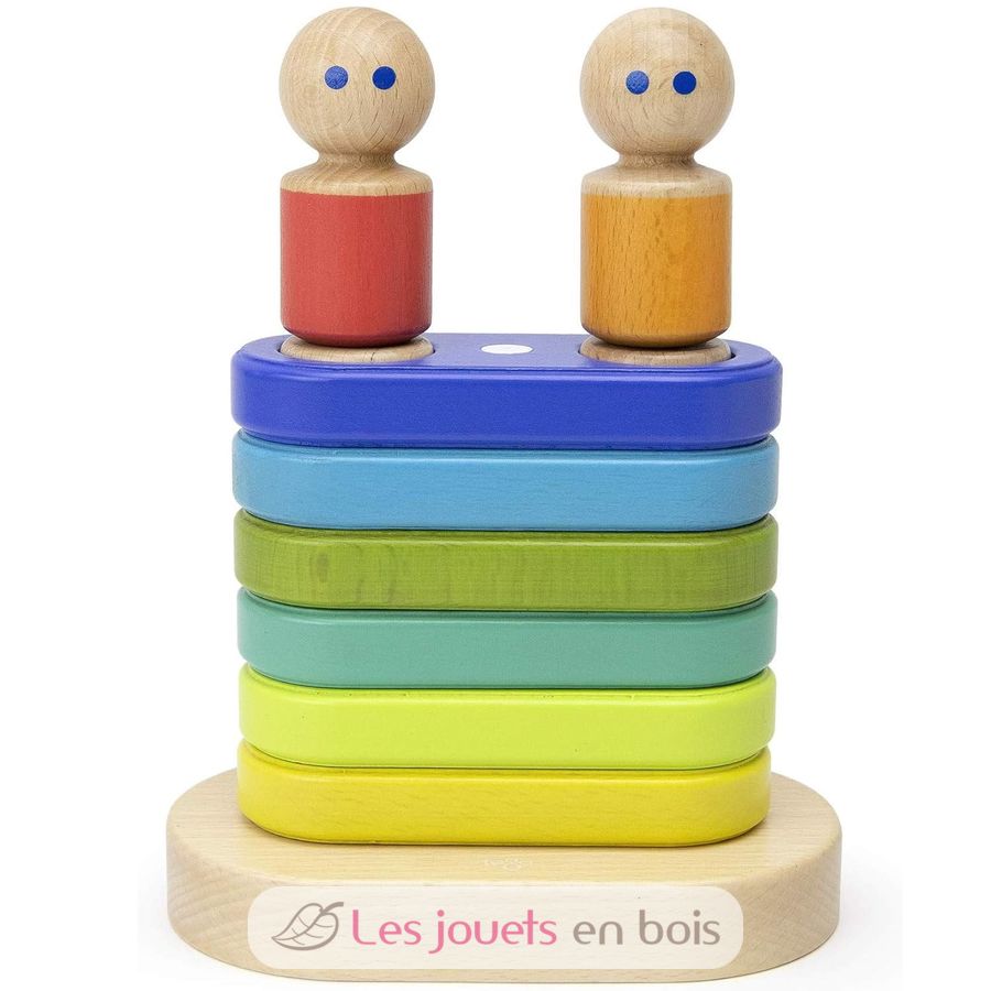 This stacking toy is made up of 11 magnetic wooden pieces.