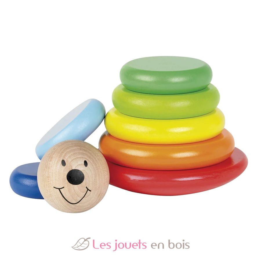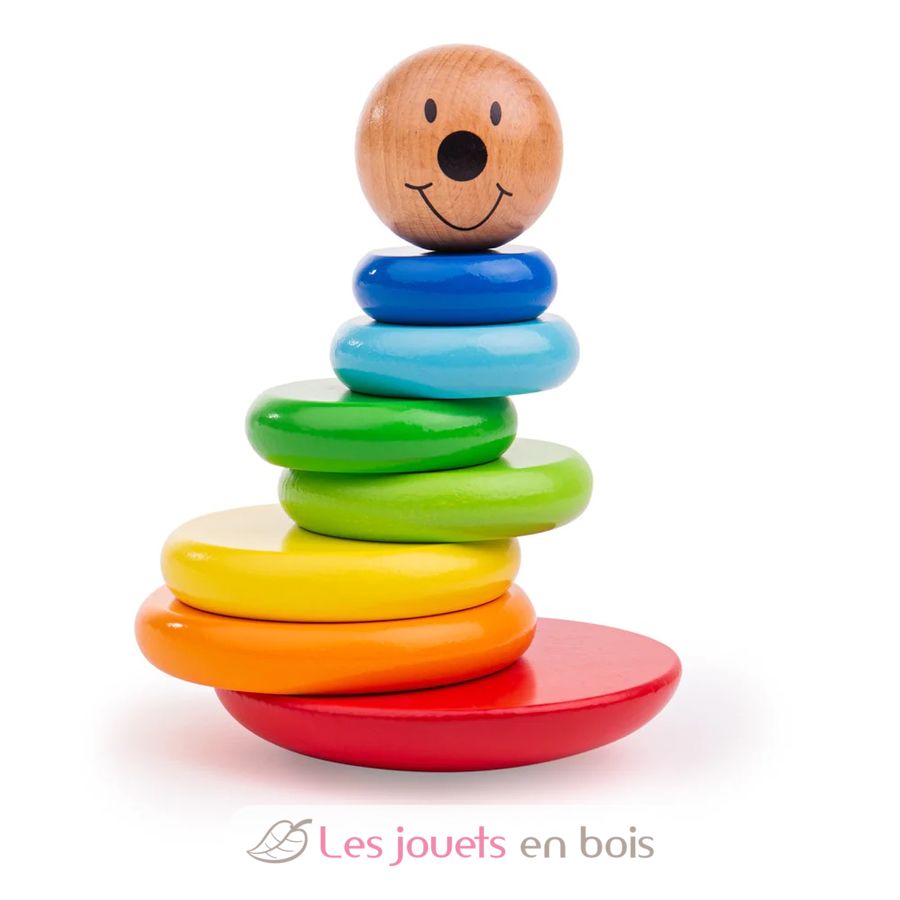 A great first stacking toy, this friendly faced character isn't your traditional stacking toy! Each of the brightly coloured wooden pieces features a clever magnet inside so that they sit firmly on top of one another, removing the frustration of slotting them onto a pole.