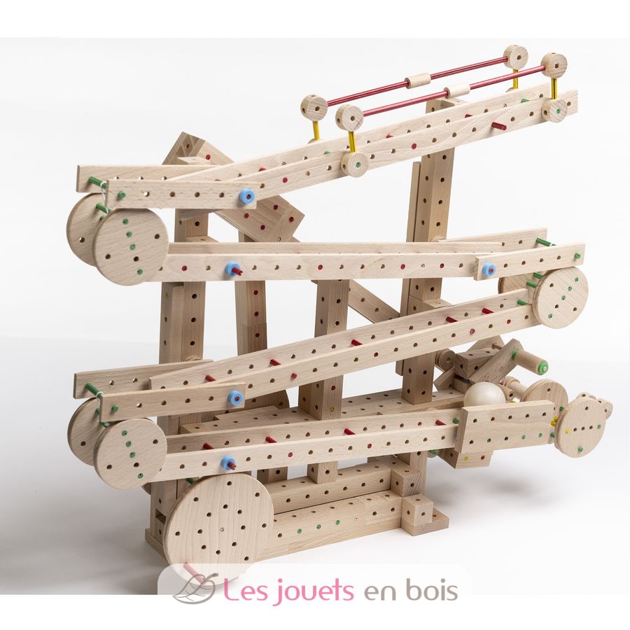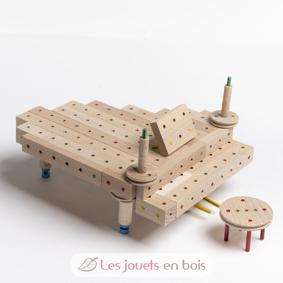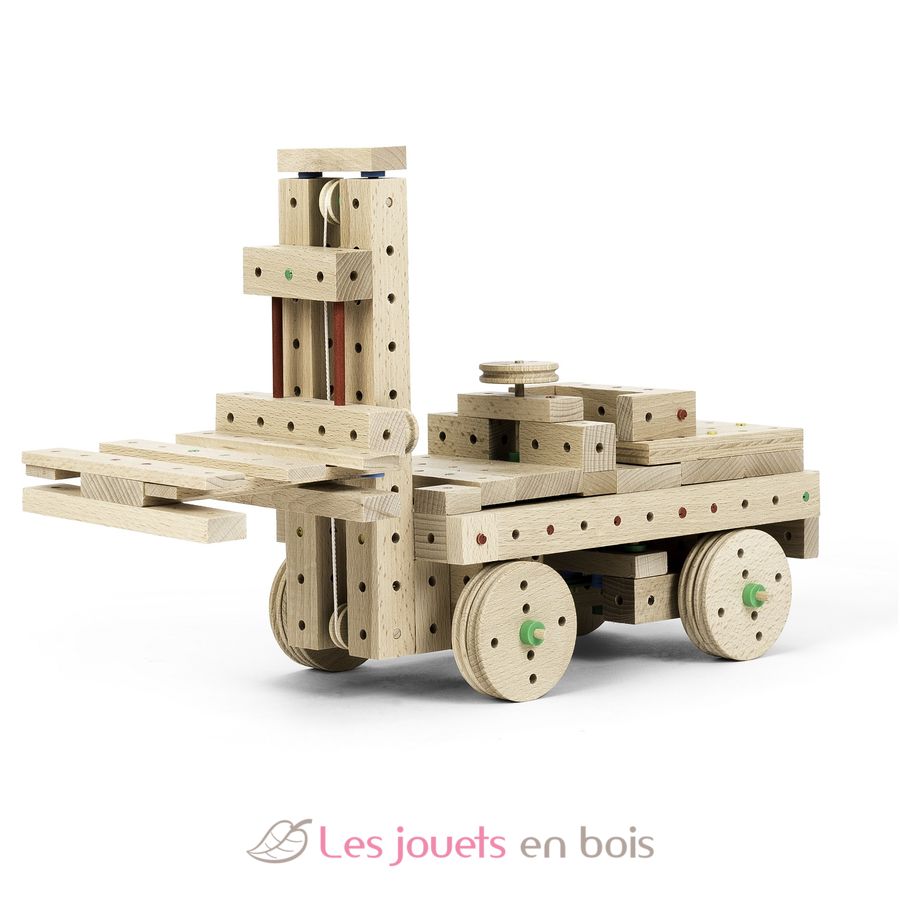The different Matador building sets and their extensions offer endless building possibilities to create a multitude of simple models such as airplanes, cars, figures, but also more complex and technically advanced landscapes. This wooden building game helps develop your child's manual skills, spatial intelligence, technical aptitude and patience. It's a perfect gift for creative kids and future engineers.