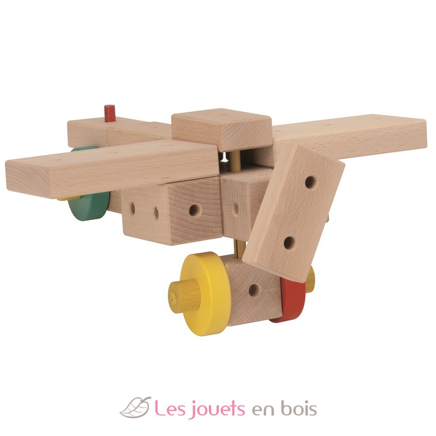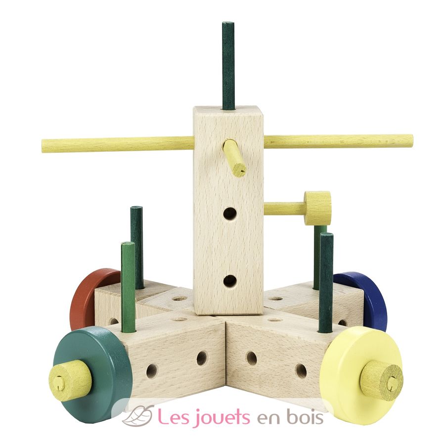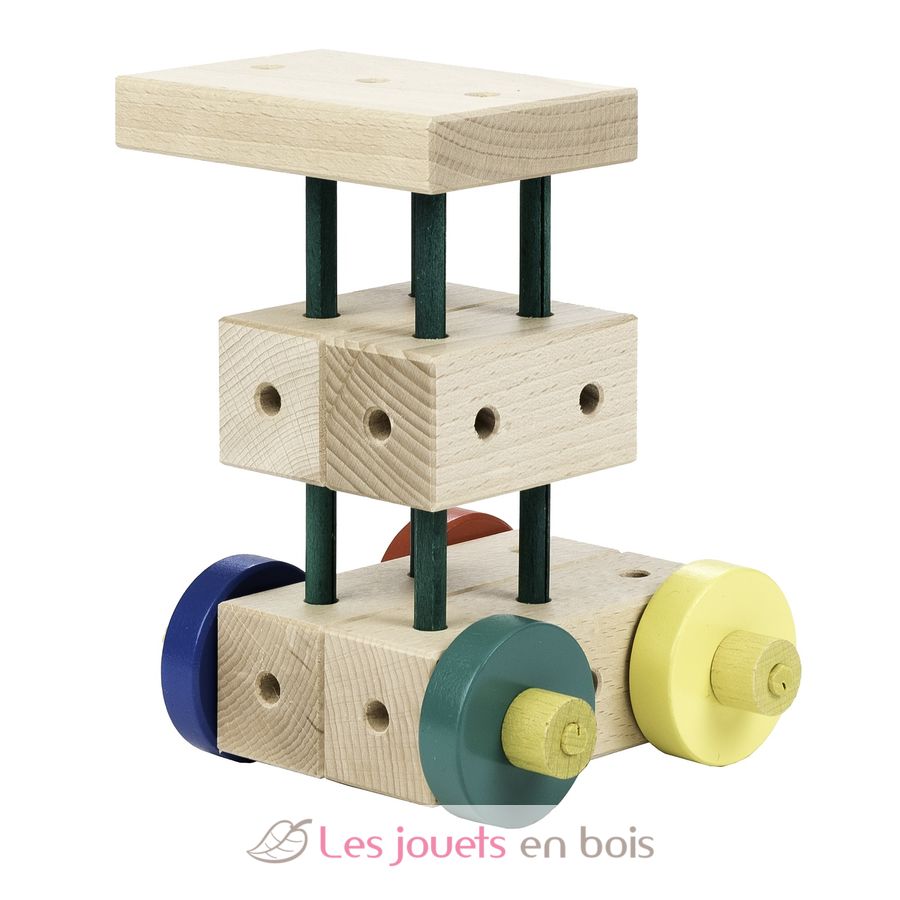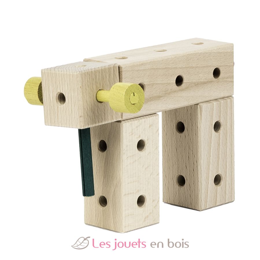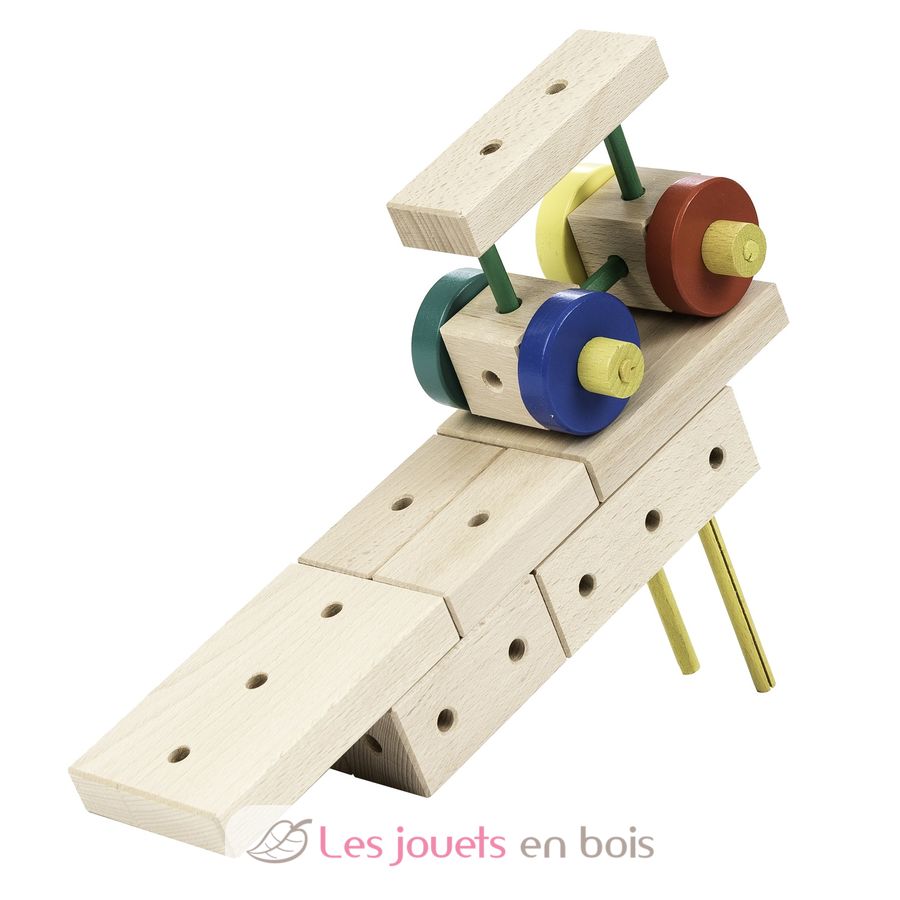 The different Matador building sets and their extensions offer endless building possibilities to create a multitude of simple models such as airplanes, cars, figures, but also more complex and technically advanced landscapes. This wooden building game helps develop your child's manual skills, spatial intelligence, technical aptitude and patience. It's a perfect gift for creative kids and future engineers.