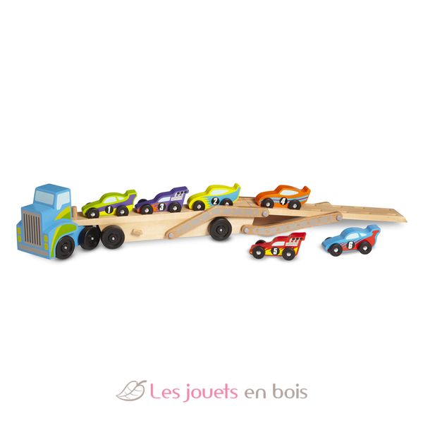 Mega Race Car Carrier, a wooden truck made by Melissa and Doug. Item number 12759.