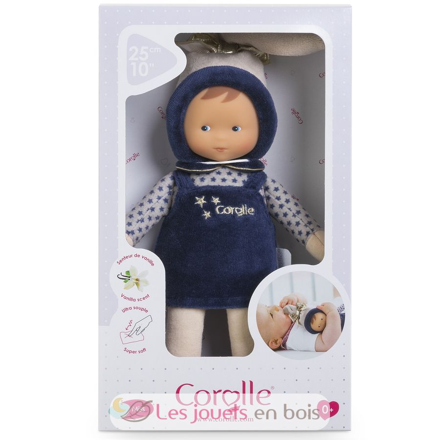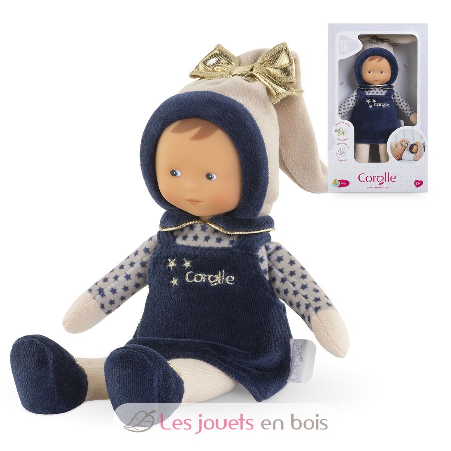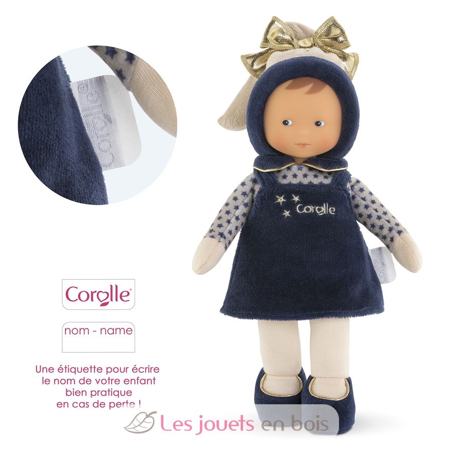 Miss Navy Blue Starry Dreams, a 25 cm soft baby doll made by Corolle.