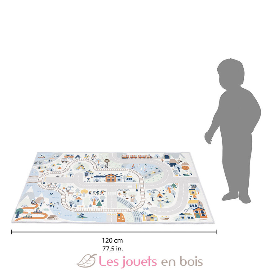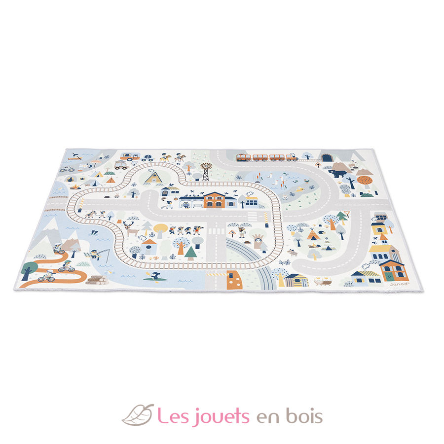 Direction: the Mountain Valley! In this snowy, winding setting, you can travel without fear of cold or altitude! This Mountain Valley playmat is suitable for children aged 2 and over. It features a long, wide road, as well as a railroad track, for venturing into the heart of winter and imagining endless stories!